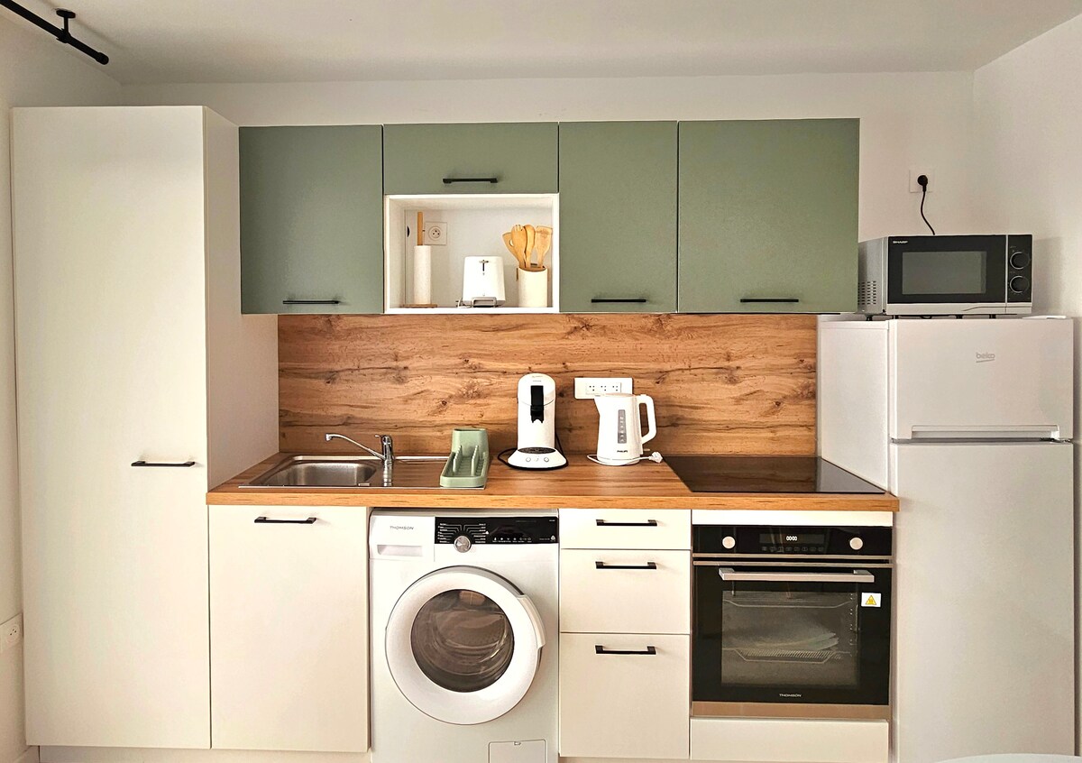 Bonito apartamento luminoso de 30 m2, situado en una residencia en el segundo, reformado (02/22), con una decoración moderna. Bonita sala de estar, cocina equipada. Alojamiento para 2/4 personas (1 habitación con cama de 140 cm x 200 cm + sofá cama para 2 personas en la sala de estar). Con una ubicación ideal a 400 metros de las playas y a 5 minutos a pie del centro de la ciudad. Posibilidad de llegada independiente (código digital y caja de llaves). Se proporcionan almohadas, edredones, protectores de colchones, no se proporcionan sábanas y toallas.
