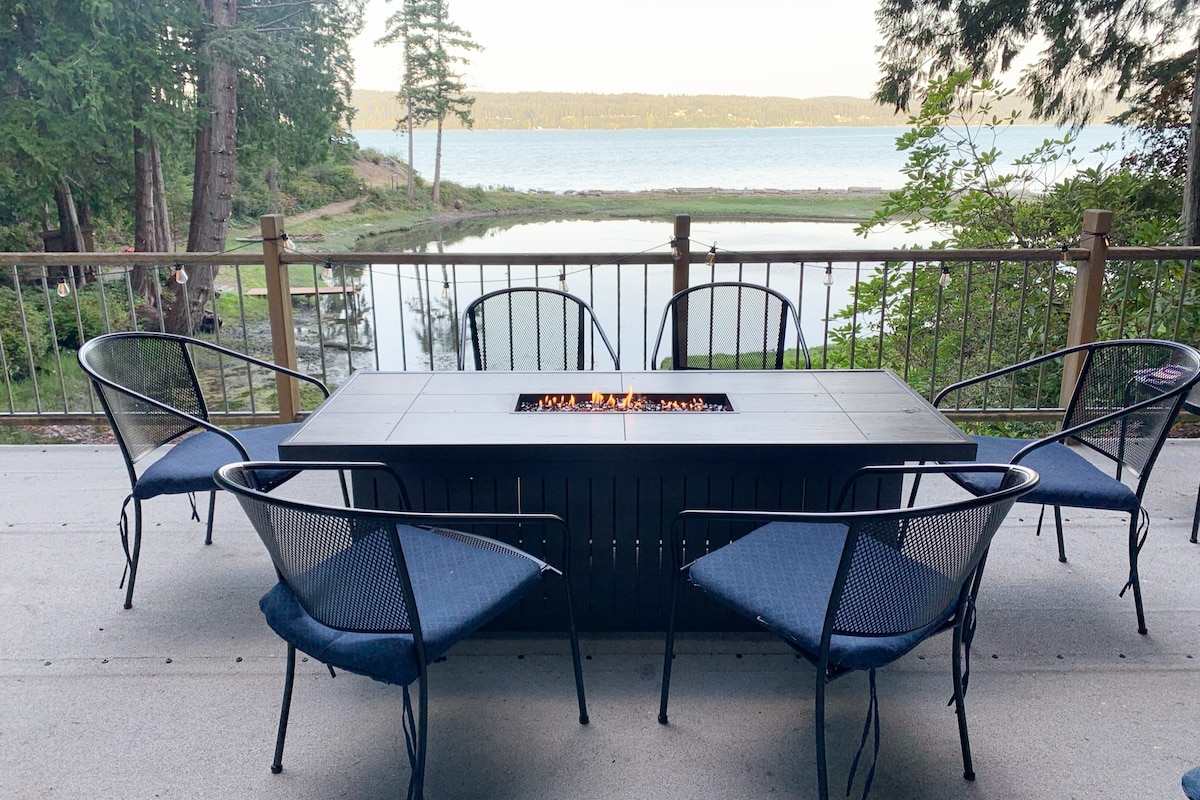 Las ventanas del suelo al techo te permiten disfrutar del paseo marítimo, las águilas calvas residentes y las nutrias desde la comodidad del sofá. Barbacoa y asa s'mores a cubierto en la parrilla de gas y el fogón en la terraza, con vistas a la laguna privada y al canal Hood. Ubicado en el bosque, ¡es una escapada perfecta del bullicio! Los servicios al aire libre abundan, con una laguna y una bahía protegidas, 5 tablas de remo, un bote de remos, una cancha de pickleball, así como fogatas y parrillas de carbón en la playa y la laguna también.
