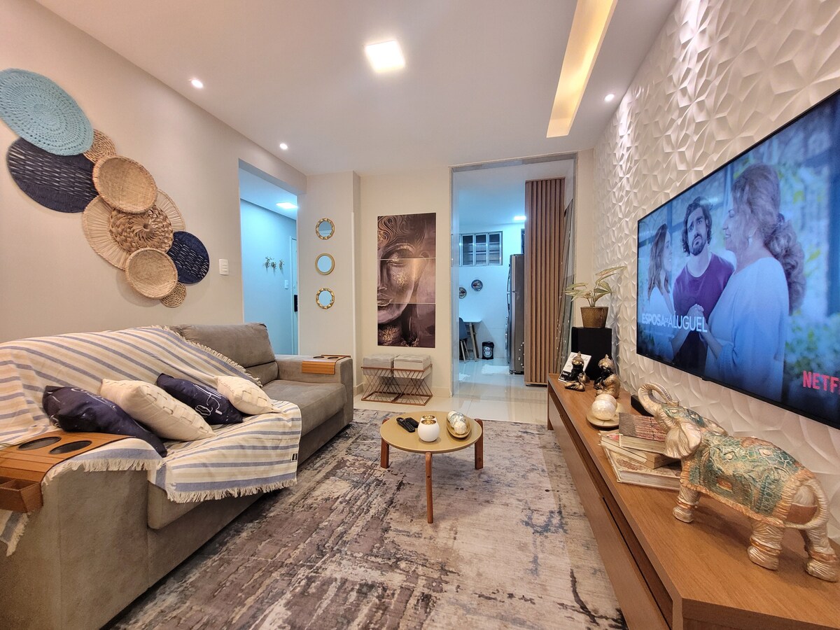 Fabuloso apartamento, recién reformado, muebles nuevos, acogedor. Situado en el piso 26 con ventana del suelo al techo para disfrutar de la sensacional vista, digna de un cartel. Cocina totalmente equipada, aire acondicionado split y smart TV en el dormitorio y en la sala de estar para mayor comodidad. Infraestructura del condominio con piscina, sauna, gimnasio, restaurante y limpieza diaria incluida en el precio diario. Muy bien ubicado. A pocos metros de la playa y a pocos pasos del centro comercial Leblon. ¡Para amar y volver!