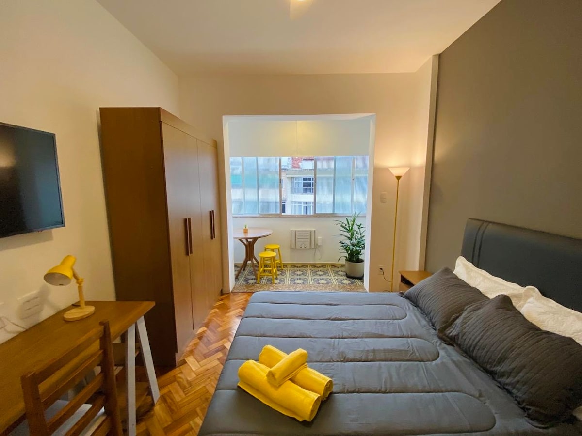 Apartamento moderno, práctico, cómodo, decorado con buen gusto y funcional, con 1 dormitorio espacioso en el corazón de Copacabana. Se encuentra a solo 1 manzana de la famosa playa de Copacabana, puesto 5, y a 10 minutos a pie de Ipanema. Hay un espacio público delante del edificio con equipos de ejercicio al aire libre. El apartamento está en un edificio lujoso y de primer nivel con nuevos ascensores sociales y de servicio y portero las 24 horas, los 7 días de la semana. Seguro y vigilado en todo momento. Es una unidad de esquina, por lo que el ruido no suele ser un problema.