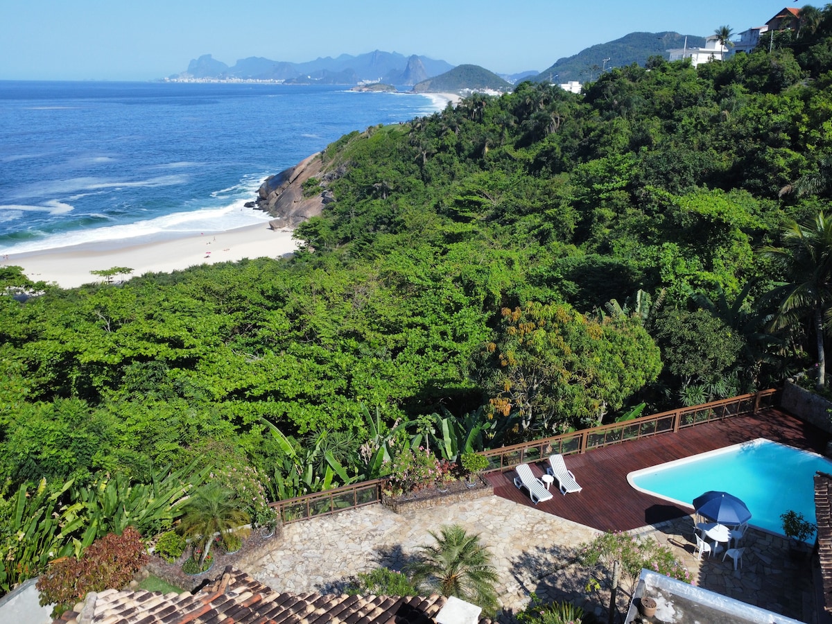 Una casa en el bosque, inmersa en la naturaleza, con vista al mar y al amanecer. En un barrio seguro frente al Hotel Sheraton, a solo 5 minutos caminando de la playa. Cerca de Leblon, São Conrado e Ipanema. Esta casa es una de las más únicas de Río: monos saltando entre los árboles, tucanes que la visitan y por la noche se duerme con el sonido del mar. Entrada privada • Baño privado • Aire acondicionado• Estacionamiento gratis • Café gratis