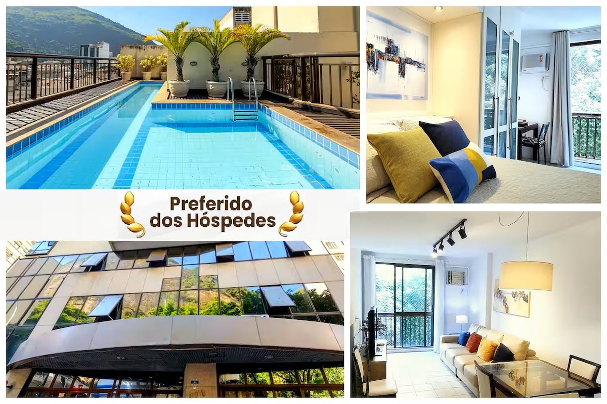 Lugar perfecto para descansar, tranquilo, lleno de estilo, a pocas cuadras de dos de las playas más bellas del mundo: Copacabana e Ipanema. Apartamento con dormitorio, cocina, sala de estar, baño y balcón con total privacidad. El condominio cuenta con piscina, gimnasio, sauna, lavandería asequible (lavandería autoservicio OMO) y un minimercado autoservicio.