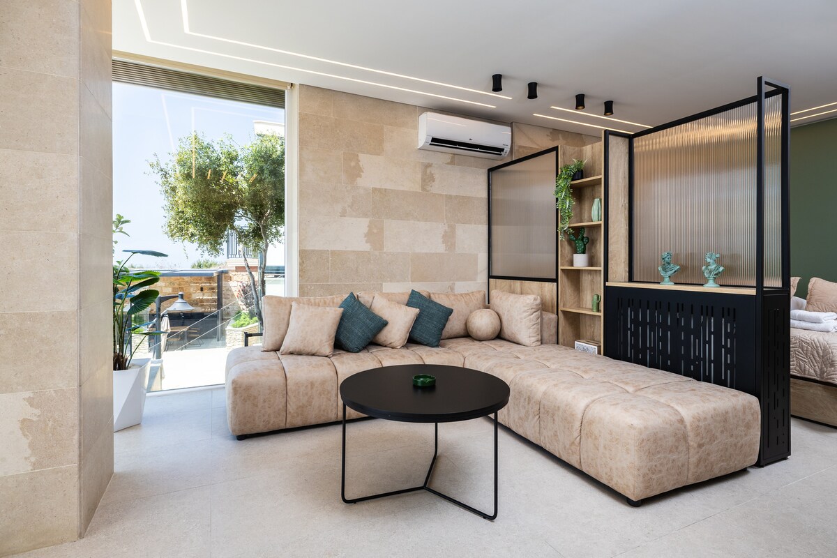 Stay in the heart of Batroun’s vibrant Old Souks in this luxury designer suite featuring a private indoor jacuzzi. Surrounded by cafés, restaurants, nightlife, and historic streets, everything is within walking distance. The space blends authentic Lebanese stone architecture with modern comfort, offering a king-size bed, cozy lounge area, Smart TV, Wi-Fi, AC, and a semi-equipped kitchenette for a stylish and relaxing getaway.