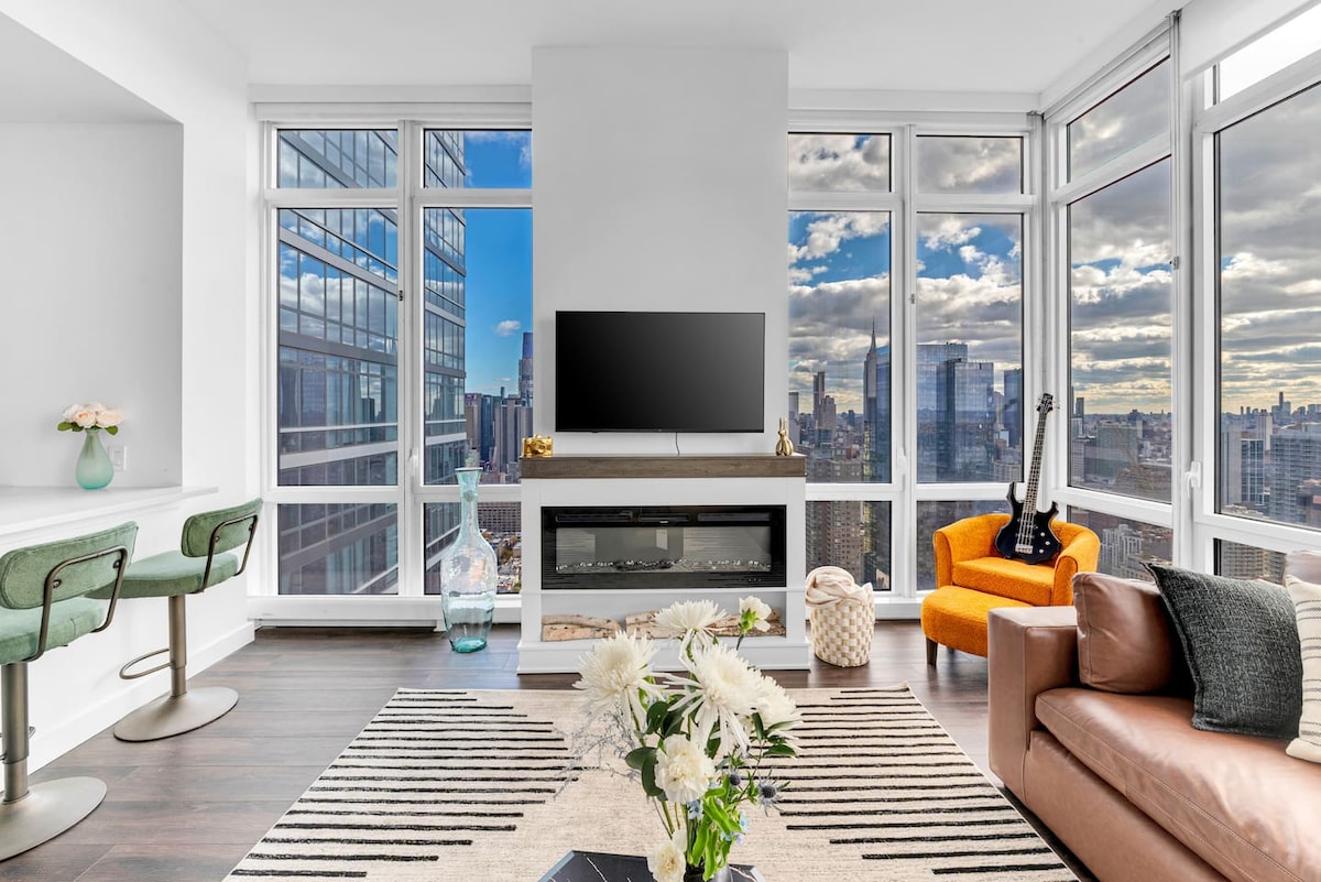 Lujoso NYC 2BR/2BA con chimenea y vistas al horizonte