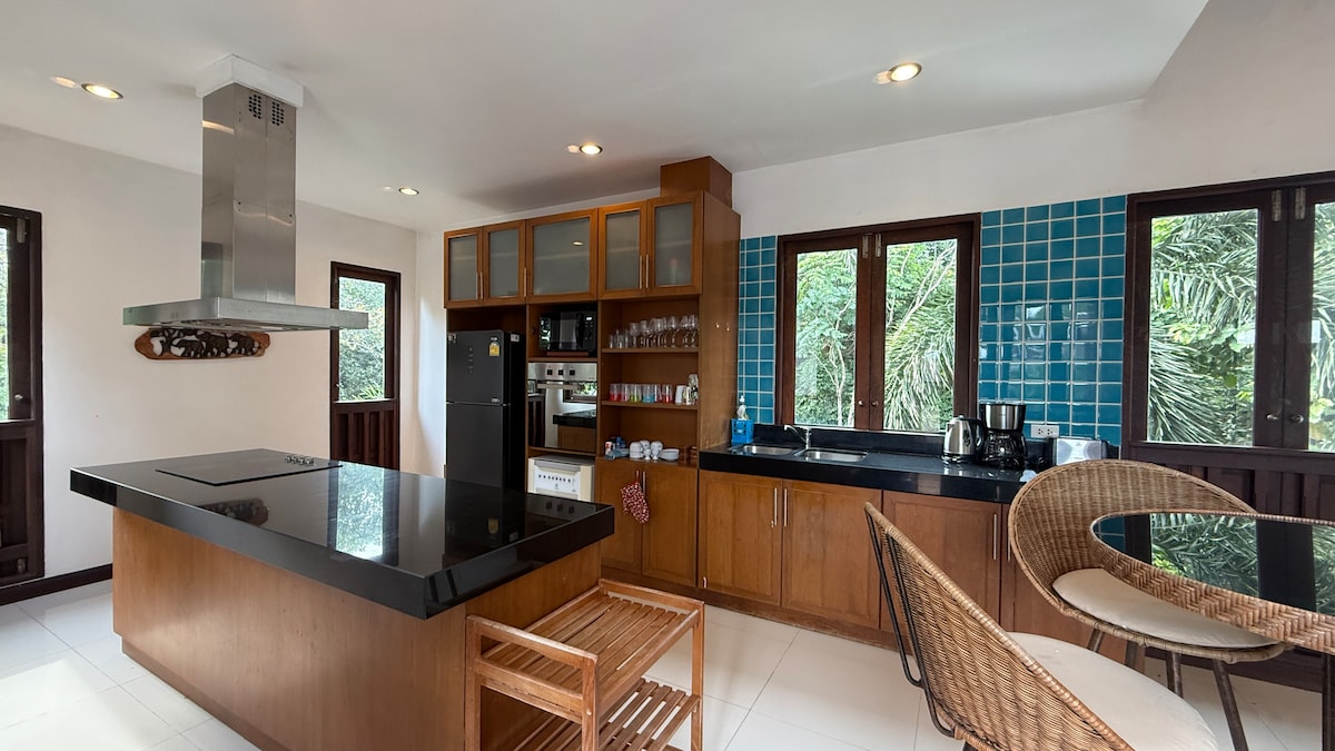 Bienvenido a nuestra villa de 2 pisos (aprox. 120 m²) en la costa este del golfo de Tailandia. Ofrece 3 dormitorios con vistas únicas, una cómoda sala de estar, una cocina bien equipada y terrazas al aire libre. Explora el jardín con palmeras, date un chapuzón en la hermosa piscina compartida o pasea hasta una de las mejores playas del continente: la playa Mae Phim, a solo 350 metros de distancia. Perfecta para familias o parejas. Disfruta de unas vacaciones relajantes, seguras e inolvidables en una lujosa finca Seabrezze junto al mar.
