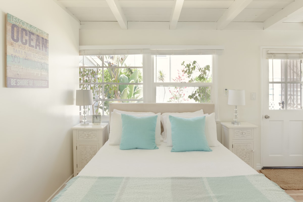 Precioso, luminoso, limpio y silencioso bungalow solo para dos adultos (lo sentimos, no se permiten niños/bebés, NO ES A PRUEBA DE NIÑOS. Entrada privada por el callejón. Cocina gourmet, Subzero, cocina Viking, ducha a ras de suelo, cabezal de ducha. Hermosos pisos de madera, grandes ventanales que dejan entrar el sol y la brisa del mar. Mira la puesta de sol mientras cenas en la mesa de la cocina. A 5 minutos a pie de la playa, a 10 minutos a pie de The Riviera con restaurantes, tiendas. Toma las bicicletas y recorre el Strand hasta Hermosa o Manhattan. Vive como un lugareño