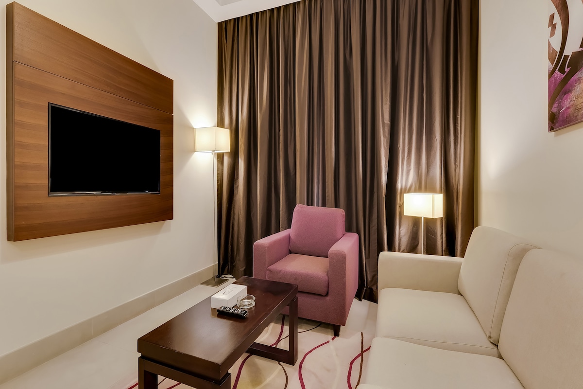 Accommodates: 4 guests (while sharing the existing bedding) For the ultimate home-away-from-home experience, our 72 m2 Two Bedroom Family Suites with furnished kitchen is unrivalled. Featuring a separate living area with comfortable sofas and multi-channel satellite TV, furnished kitchen, dining room and spacious bedrooms with ultra-comfortable bedding, it is one of the most desirable suites in Ras Al Khaimah at an affordable price.