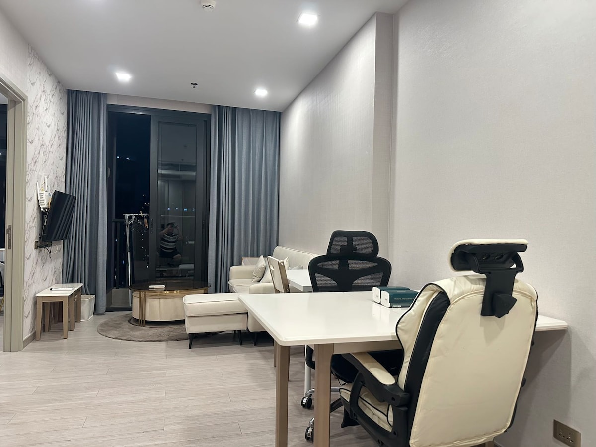 Dúplex de 2 dormitorios con amplias vistas panorámicas de Bangkok. Las ventanas del piso al techo inundan el espacio con luz natural, mientras que el moderno interior Japandi crea un ambiente tranquilo y elegante ideal para parejas, familias o viajeros de negocios. Cocina totalmente equipada, amplia sala de estar con televisor inteligente de 65 pulgadas y balcón privado. Acceso directo a un gimnasio y spa de bienestar en el mismo piso, además de una piscina en la azotea y una terraza solárium arriba. El centro de alimentos, los cafés y un mercado abierto las 24 horas, los 7 días de la semana, se encuentran dentro del edificio,