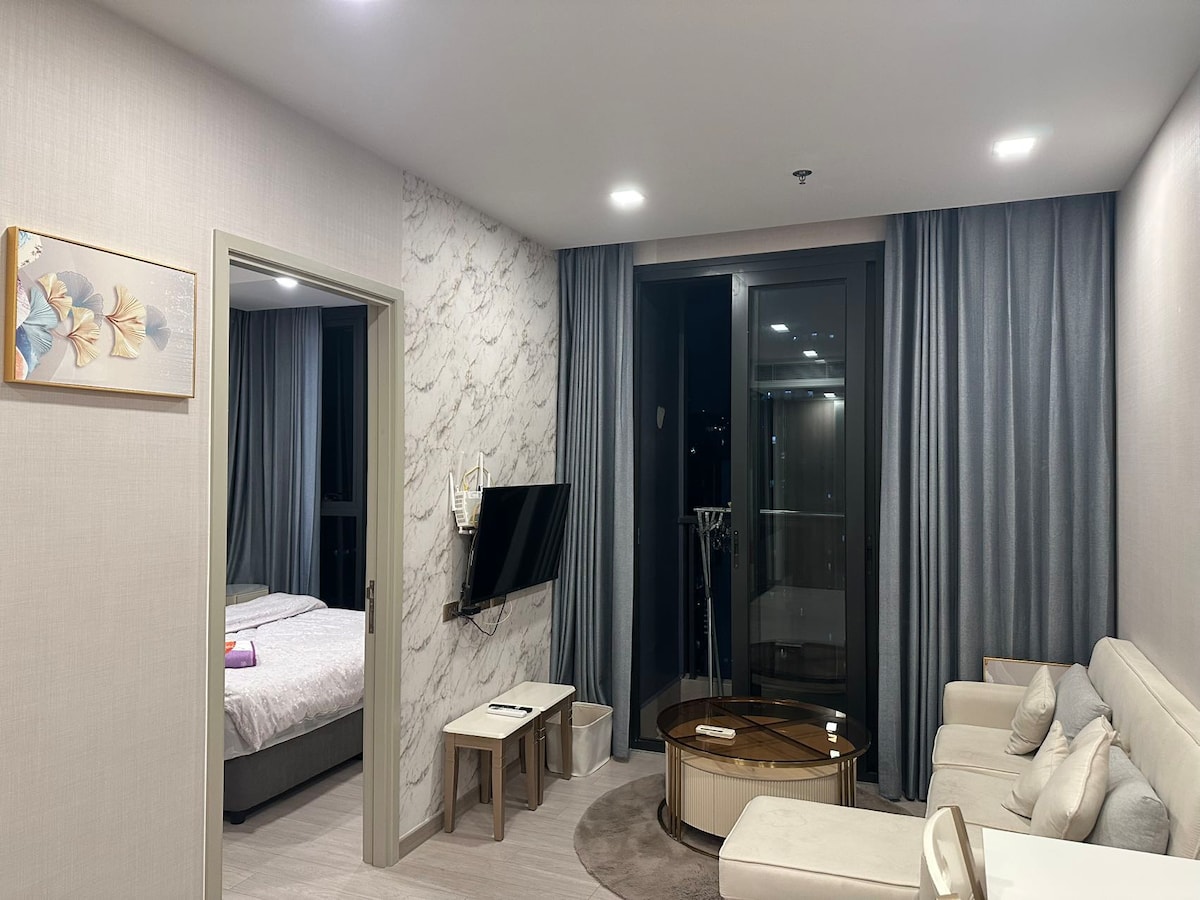 "This brand-new 1-bedroom condo is located just 7 minute walk behind Siam Paragon, one of the city’s best locations and 350 m from BTS Ratchathewi" Be the first guest to enjoy this immaculate space, fully furnished with modern design and quality finishes. - The Space 35 SQ.M. | 1 Bedroom | 1 Bathroom Brand-new unit — never lived in Queen-size bed, sofa bed, smart TV, Washer and dryer Fully equipped kitchen: microwave, fridge, dining set Monthly bookings welcome.