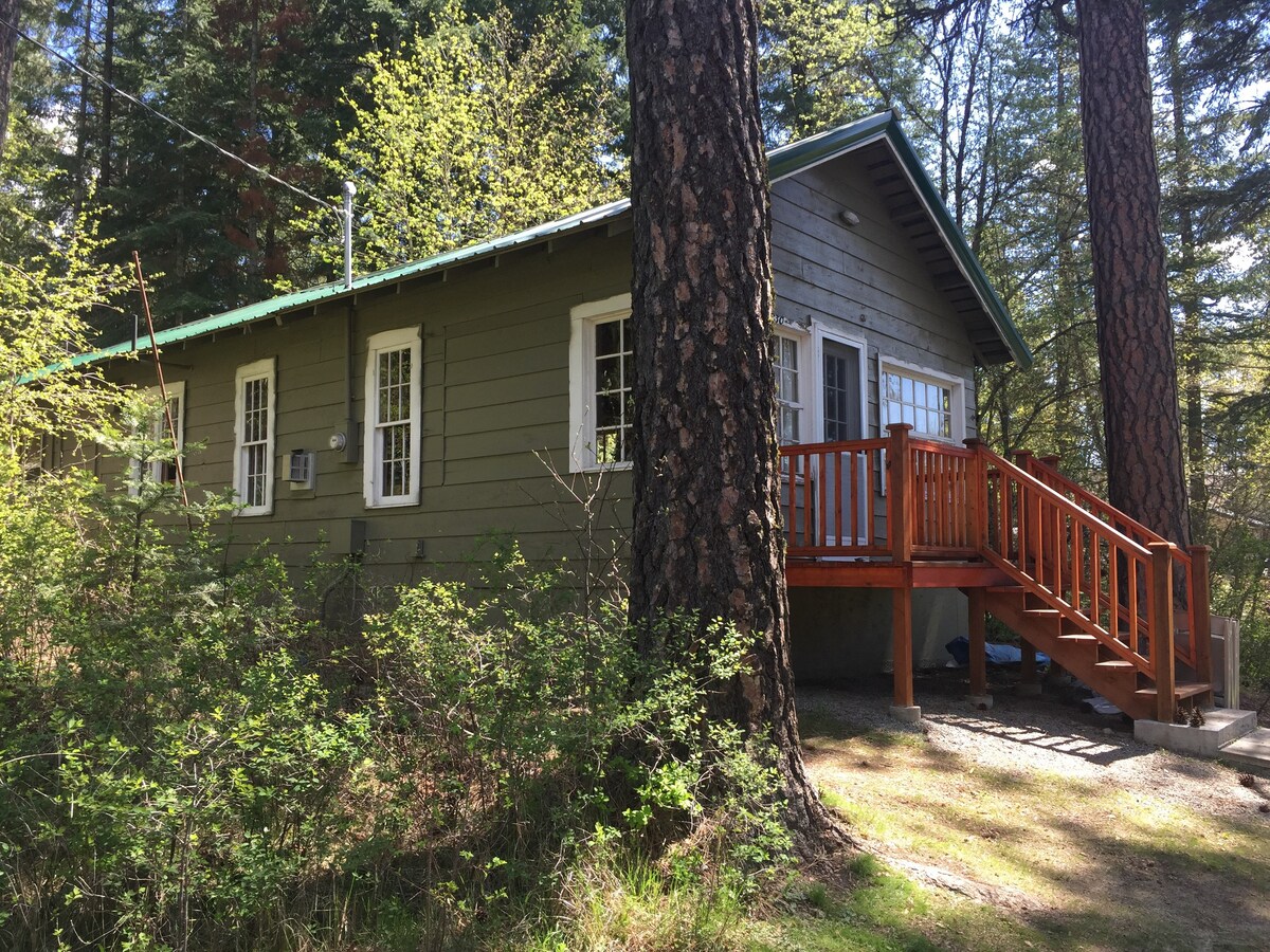 A private location on our property. The guesthouse is detached from our estate on five acres. Larger than a hotel room and much more nicely furnished. For those traveling through the area, we are five minutes north of interstate 90 on the Idaho Washington border. Lots of wildlife including our puppy. This is a very private setting with tons of trees. The deck is the perfect place to start and end your day. Your own private parking space and private entrance. Perfect romantic getaway!