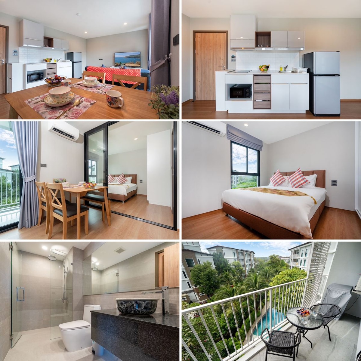 Un día cálido y soleado, un ritmo tranquilo y una bañera en el balcón: todo para disfrutar de lo mejor de Phuket 🏝️ Un apartamento de 60 m² de un dormitorio en la segunda planta de Saturdays Residence con vistas a la piscina y a las palmeras. El dormitorio separado, la acogedora sala de estar con cocina y el balcón con salón al aire libre crean un ambiente tranquilo y relajante. La televisión, la lavadora, el aire acondicionado y el wifi estable proporcionan comodidad diaria.