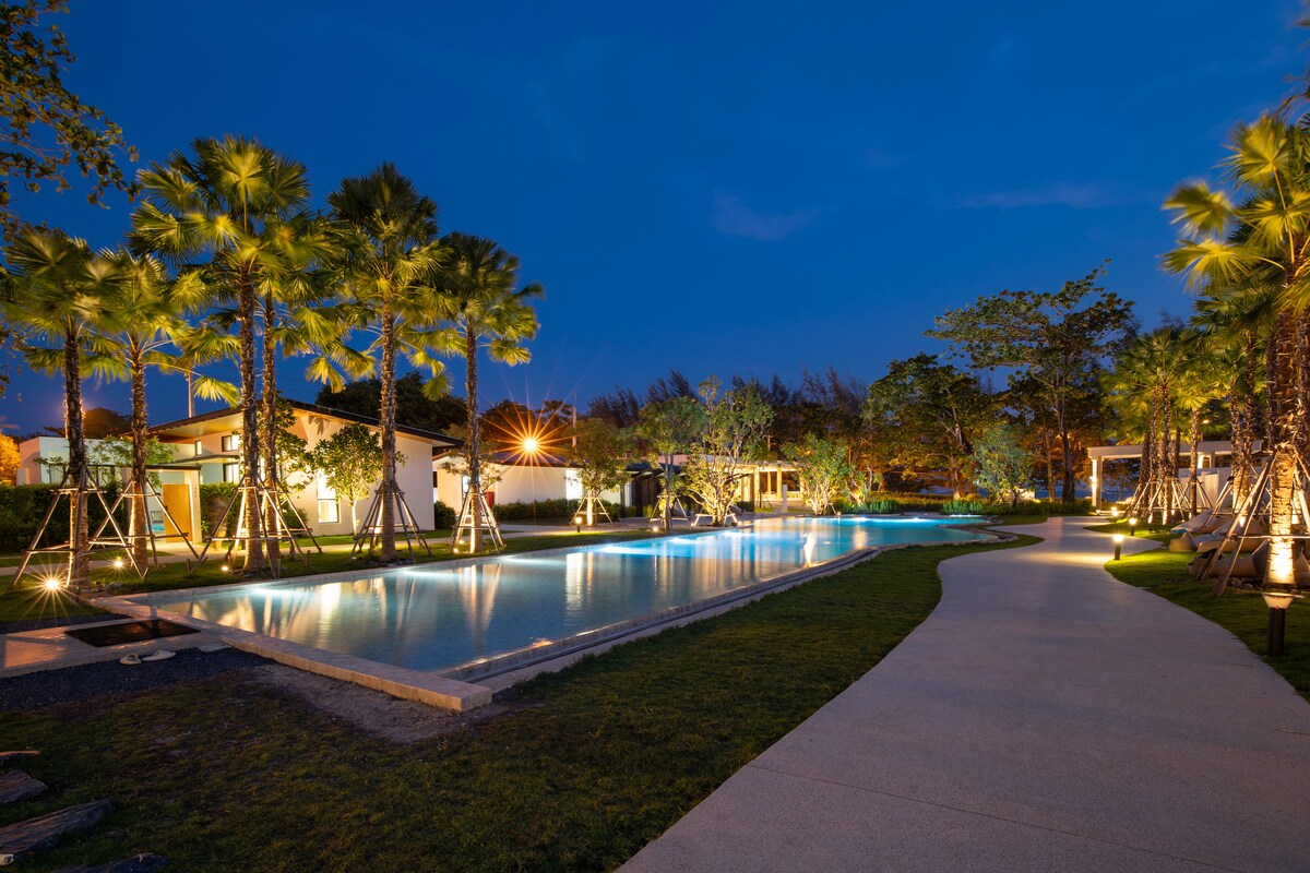 Villa Zona B - Villa privada de nueva construcción perfecta para 5 adultos - Se puede solicitar una cama adicional con ฿700 por persona/noche (máximo 6 adultos). - 131 metros cuadrados 2 dormitorios 2 baños 1 sala de estar espaciosa. - 1 cama tamaño king (6 pies) + 1 cama tamaño queen (5 pies) + 1 cama individual (3,5 pies) - Equipo completo de cocina y parrilla. - minibar: aire acondicionado, caja de seguridad, sofá, TV inteligente de 32 pulgadas. - Wifi de 30 Mbps - Kit Baht (gel de ducha, champú, banda para el cabello, cogollos de algodón)