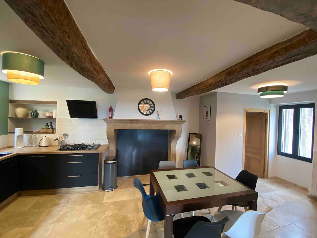 Masía de piedra con encanto, con aire acondicionado y red wifi-fibra. Jardín de flores y árboles. Piscina, huerto con frutas de temporada ( manzanas, cerezas, membrillos)..Terraza sombreada, con brasero y piscina contigua. Acceso privado al bosque cercano para dar un paseo. Zona de relajación con juegos al aire libre disponibles: tenis de mesa, mikado molkky gigante, petanca. Para los deportistas, descenso del Ardèche, barranquismo y tenis cerca. Gastos de limpieza incluidos sábanas y toallas para 6