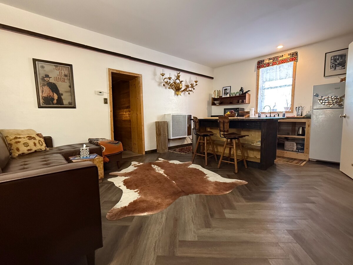 Cozy 316 sq ft second-floor condo just 170 ft from Main Street in the heart of Red River! Walk to ski lifts, shops, restaurants, bars, and activities. Includes 1 queen bed + 1 queen sleeper sofa, a remodeled bath with walk-in shower, and a full kitchen stocked for cooking. Pet-friendly (1 dog max) with a dog park just 0.4 mi away. On-site parking for 1 small-to-mid-size vehicle only; large vehicles/trailers must use nearby public parking. Grill/smoker available. Stairs required—no elevator.