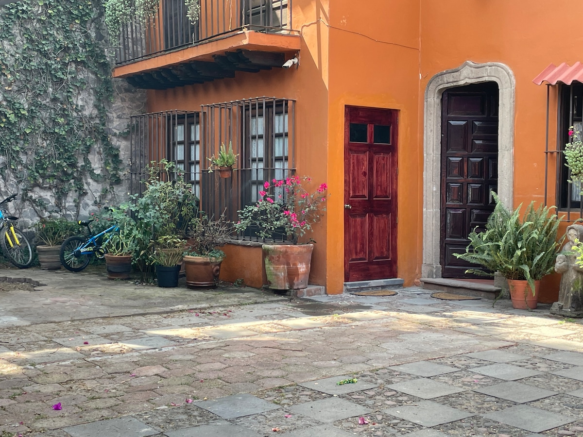 Casa vintage en zona segura para caminar en la Ciudad, vivo con mi esposa Andrea y 2 hijos pequeños! Tenemos un gato Horus y perro Ganesh. Entrada independiente ingresando por la sala a una escalera algo estrecha que llega al patio exterior y conecta a escalera de caracol a la habitación. Tenemos luggage room en la planta baja, el cuarto cuenta con tv, wifi, cocineta, comedor exterior y baño. Terraza ideal para relajarse y leer en la hamaca. Gran ubicación en Condesa llena de lugares caminando!