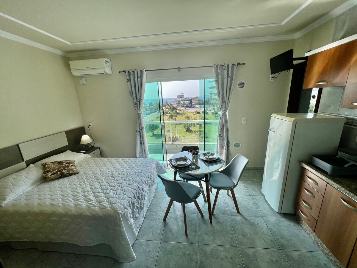 *Ideal para quem busca tranquilidade e contato com a natureza! *Acordar e ver o nascer do sol na Praia de Mariscal e contemplar no fim da tarde, o pôr do sol na Praia de Canto Grande, uma experiência encantadora. *Localizado entre duas praias, o apartamento conta com um mercadinho embaixo, em um bairro bem tranquilo, de frente para uma praça, com vista para o mar e o acesso para a praia fica ao lado de um posto salva vidas. *Não aceitamos Pet nesse estúdio.