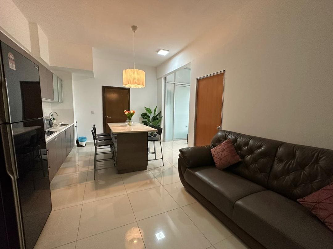 ¡Bienvenido a mi exclusivo y cómodo hogar en KLCC! Este elegante apartamento de 2 dormitorios y 2 baños ofrece una vista impresionante de las icónicas Torres Gemelas desde el dormitorio principal y desde la relajante bañera del baño privado. El apartamento está bien amueblado con una amplia sala de estar y una cocina totalmente equipada. También estarás a poca distancia a pie de centros comerciales populares (como Pavilion, KLCC, etc.), restaurantes, cafeterías y, lo mejor de todo, la estación Conlay MRT2 está a tiro de piedra.