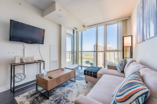 Serene Retreat with Breathtaking Views: Relax and unwind in this beautifully appointed Airbnb. Enjoy stunning views from the comfort of your own private oasis. Our prime location puts you just a short walk away from popular amenities like Superstore, Wal-Mart, Dollarama, and LCBO. Plus, enjoy exclusive access to the gym, sauna and free underground parking. Not suitable for children. Business Number: 25-126558