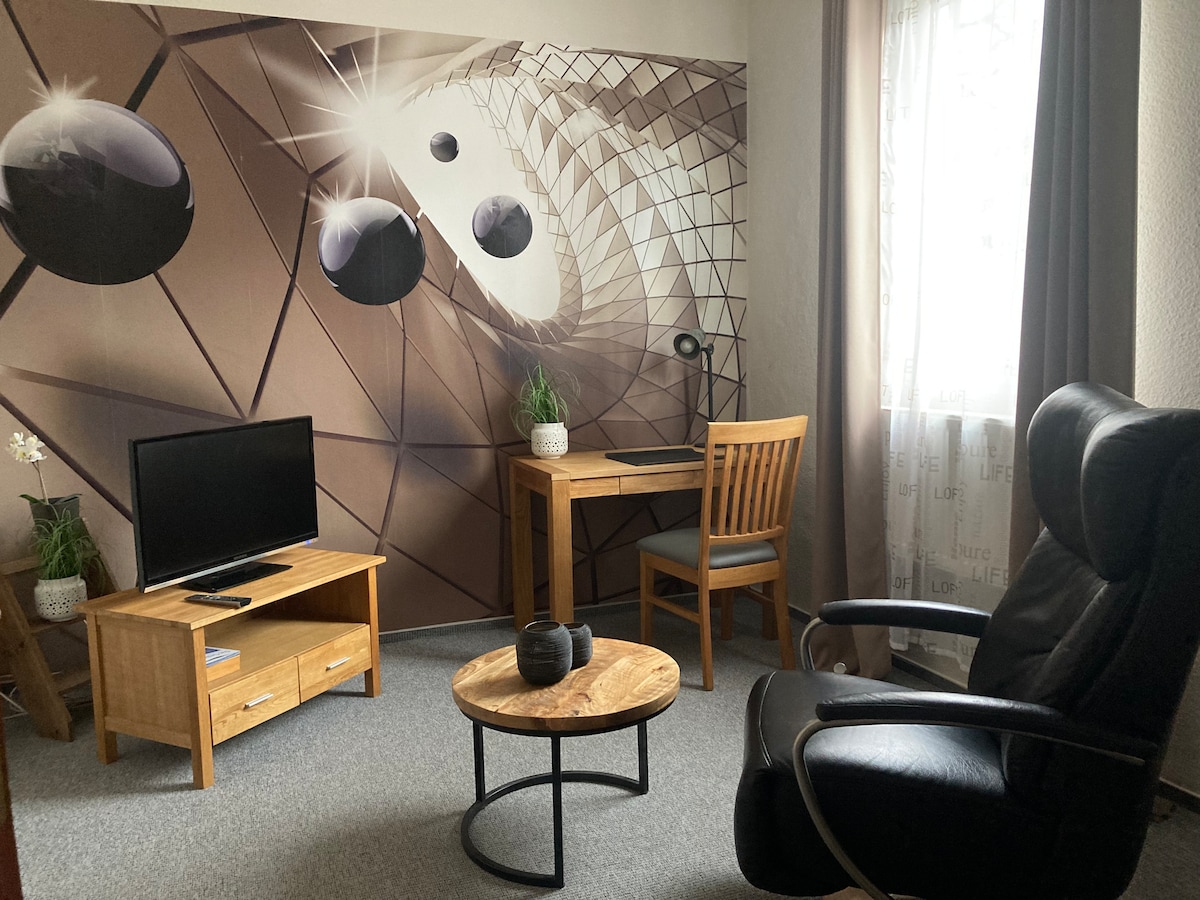 We like to invite you to our freshly renovated studio appartment in the basement of our house. The full furnished appartment is perfect for your stay in the heart of Bergisch Land. In the living room you can find a kitchen, a working space, a couch for relaxing and a bed size 140 x 200 cm. The accessible bathroom with day light has got a shower, WC, basin and washing machine.