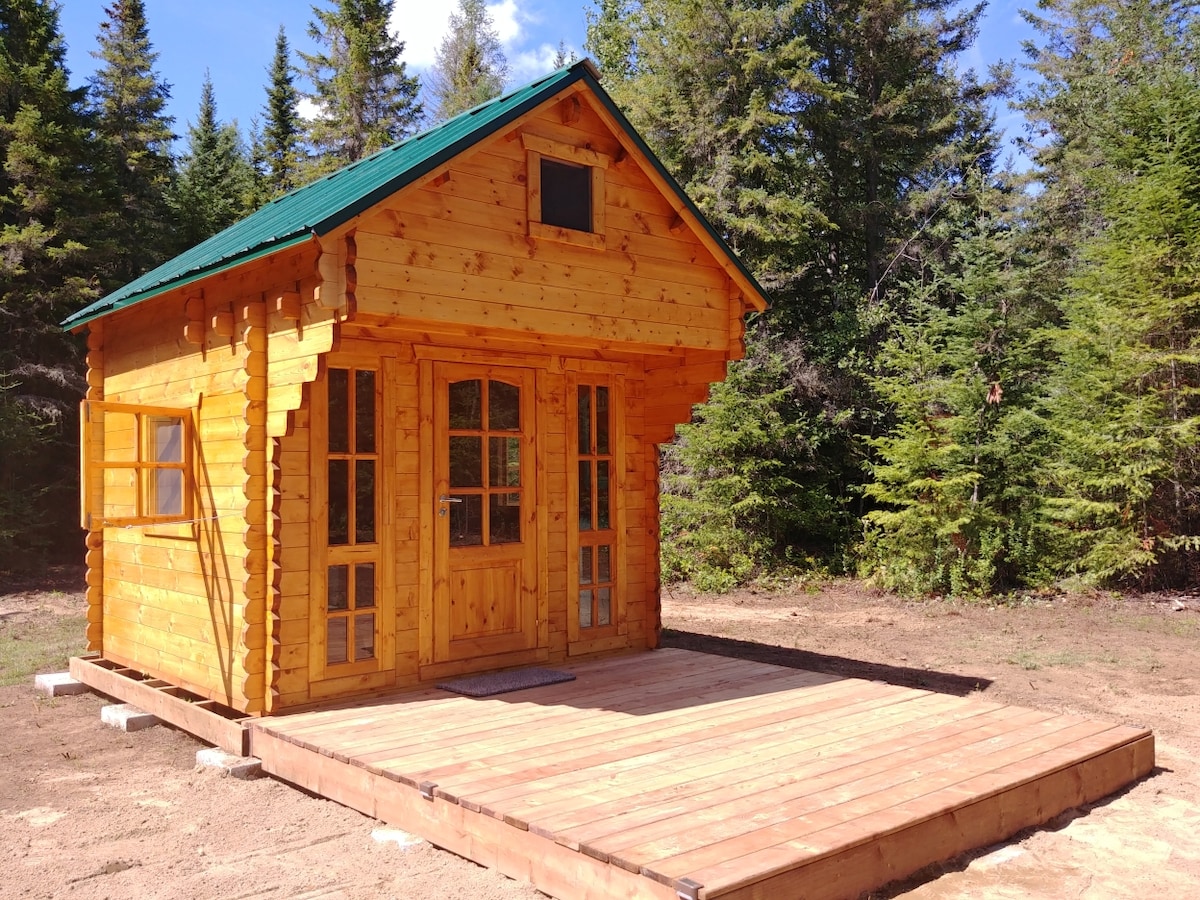 Pequeña cabaña de 14 x 14 con terraza. Wifi disponible, calentador, microondas, cafetera, nevera, mesa, sillas y 2 literas. Letrina exterior cerca. Un gran lugar para dormir si vas a estar fuera todo el día haciendo senderismo, geocaching, pesca, piragüismo, quads, motos de nieve, esquí de fondo o raquetas de nieve. South Algonquin Trails es una granja de caballos en funcionamiento. Si te gusta la buena gente y los caballos, este es el lugar ideal para ti. Se pueden montar a caballo en el sitio.