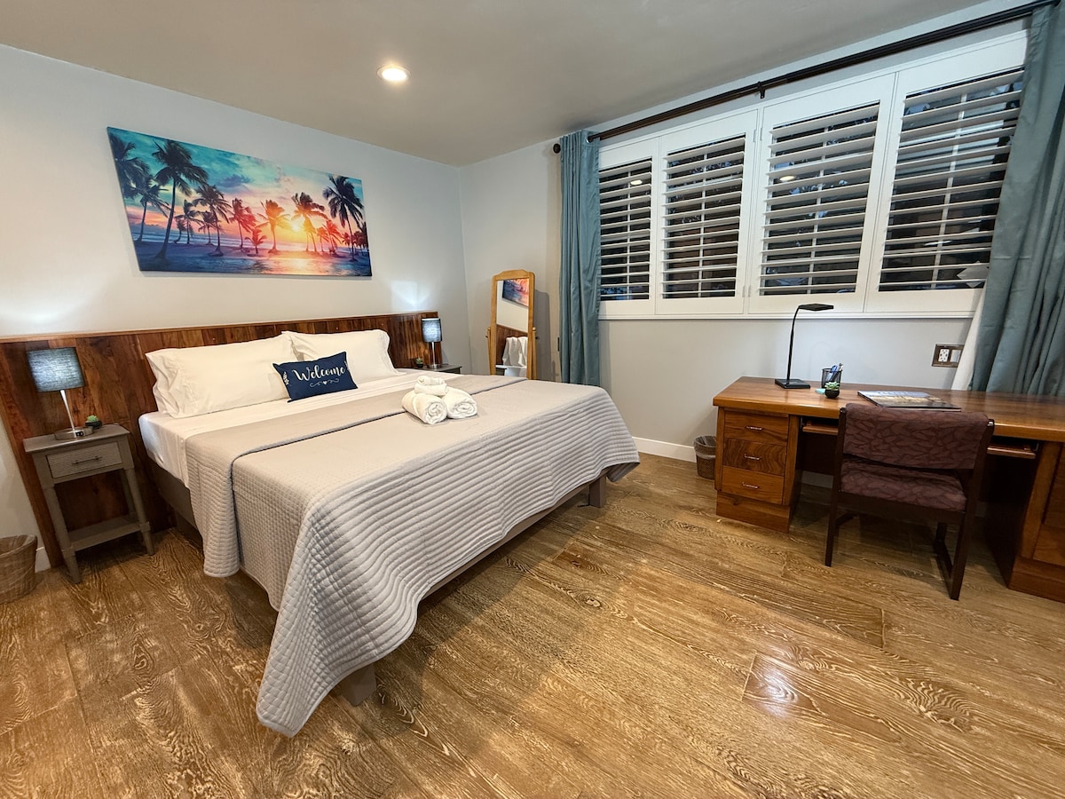 Retiro privado con entrada propia y estacionamiento en propiedad cerrada. Suite estudio de 1 dormitorio con baño tipo spa y minicocina. Cama tamaño queen con sala de estar y patio jardín. La unidad está semiadherida a la casa principal pero es completamente privada con entrada/patio independiente. * Barra de café/té * Se proporcionan aperitivos de bienvenida * Esterilla de yoga y pesas de mano. * Registro de entrada sin contacto * Immaculadamente limpio. Cómodo local de SFValley a minutos de la estación Van Nuys Flyaway hasta LAX, estaciones de Amtrak/Metro y todas las autopistas.