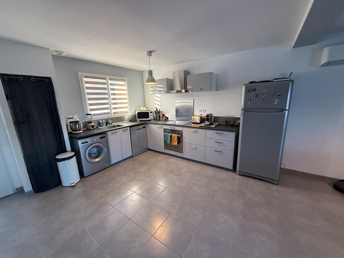 Ganador del programa "LAS MEJORES VACACIONES" TF1 Producción. Esta villa está cerca de los lugares más bellos de Hérault y Gard. A 20 minutos del mar (La Grande Motte-Le Grau du Roi-Aigues Mortes), a 25 minutos de Montpellier y Nimes. La villa está a 800 m de la vía ferrata con zona de picnic (canoa, kayak), a 3 m de un parque infantil y un campo de petanca. Un lugar ideal para descubrir nuestra hermosa región La villa es ideal para teletrabajar, 2 oficinas disponibles con fibra