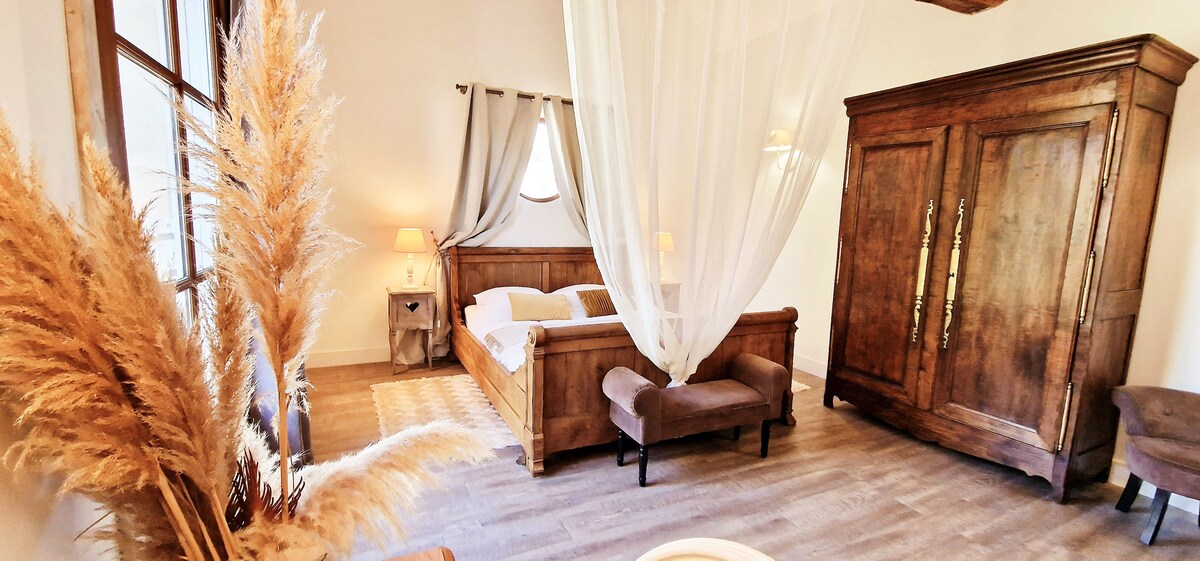El apartamento está situado en una zona tranquila, a 5 km de la orilla del mar, en una granja del siglo XIX. Una terraza orientada al sur equipada (tumbonas, barbacoa) al pie de la vivienda da a un patio cerrado al que solo tiene acceso el propietario. Jacuzzi profesional de 5 plazas todo el año, pequeña piscina durante los días soleados. Le encantarán la piedra vista y las escaleras de piedra Pasará buenos momentos incluso en invierno gracias a la chimenea (leña incluida) y el jacuzzi a 36 grados.