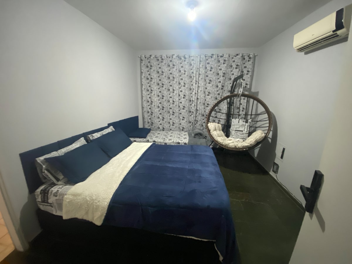 Apartamento planificado con 1 dormitorio (cama queen), sala de estar con sofá cama y aire acondicionado en las habitaciones. Habitación con TV de 70pulgadas. Duerme con comodidad de hasta 4 personas. Condominio con piscina, jacuzzi, sauna, gimnasio, parrilla para barbacoa y chopp frío. Puerta de entrada las 24 horas. Excelente ubicación: supermercado al lado, farmacia, panadería, pizzería y parque cercano. Un espacio acogedor y funcional para que te sientas en casa. Nota: No aceptamos «trabajo».