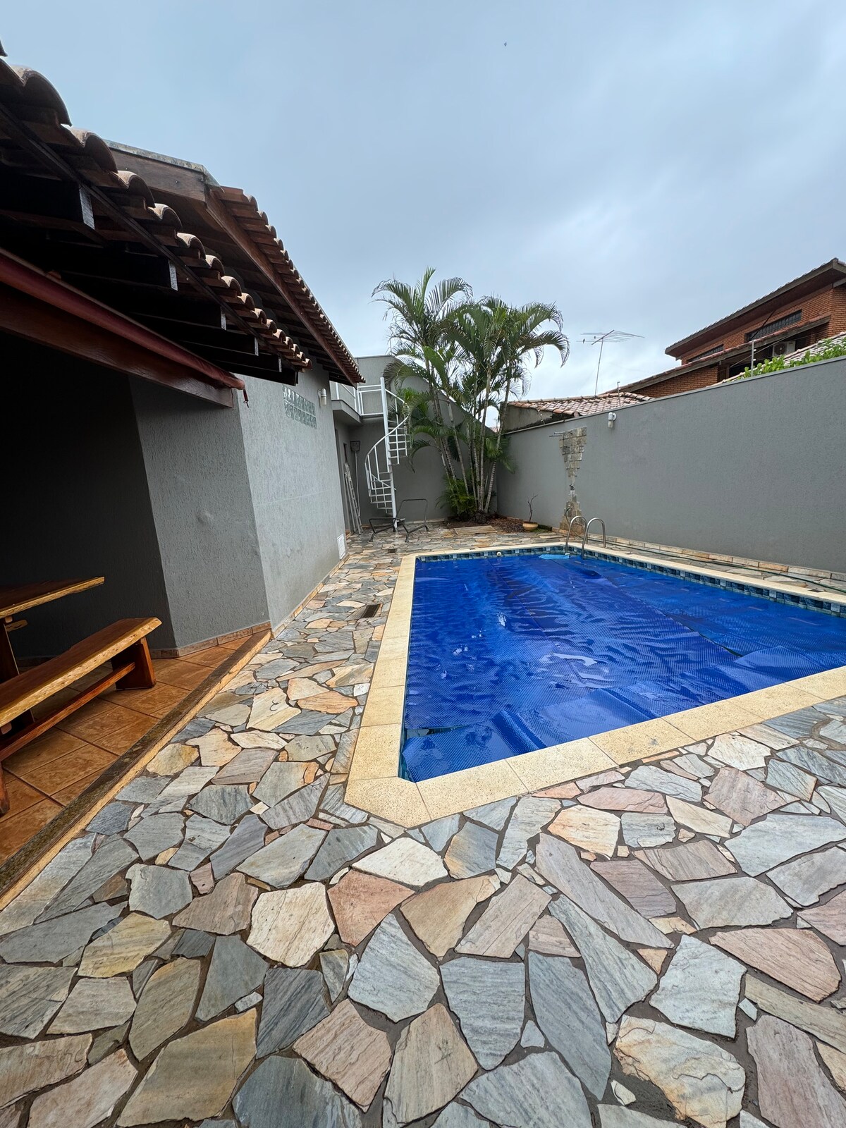 ¡Espacio único y exclusivo en Ribeirão Preto! Ya sea por placer o por negocios, ¡tu alojamiento será inolvidable! ¡Venga a disfrutar de nuestra piscina climatizada, mientras prepara su barbacoa, utiliza la cancha deportiva y se divierte en la sala de juegos! Si prefieres un ambiente interior, ¡nuestras 2 acogedoras salas de amplio espacio, además de la oficina, serán tu elección! ¡Prepare sus comidas en la cocina interior o en la cocina de apoyo en la barbacoa! ¡Y todo esto en uno de los mejores barrios de la ciudad!