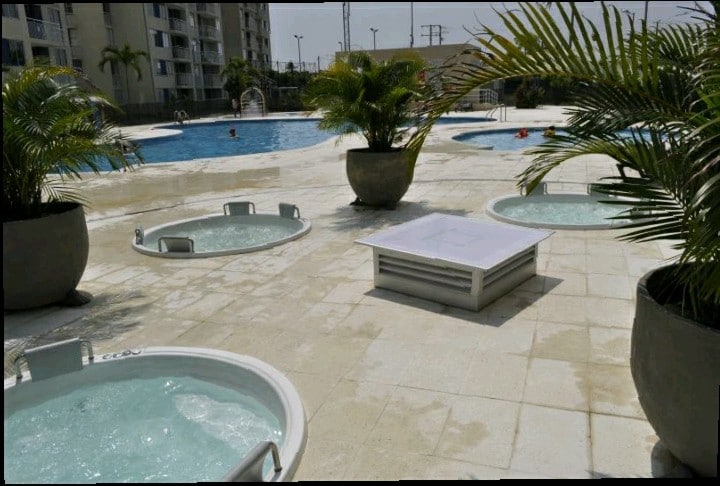 Conjunto hacienda Peñaliza el apartamento cuenta con sala, mesa bar, cocina integral, 2 habitaciones con aire acondicionado, 1 sofá cama, 2 baños, y un balcón , el conjunto cerrado cuenta con áreas comunes ( canchas de microfutbol, 2 piscinas para adultos y una para niños, parque recreacional acuático niños, parqueaderos comunales ,cuenta con un gimnasio , billar , ping pong zonas verdes , El apartamento se encuentra en el piso 3 Las torres cuentan con ascensor ☑️