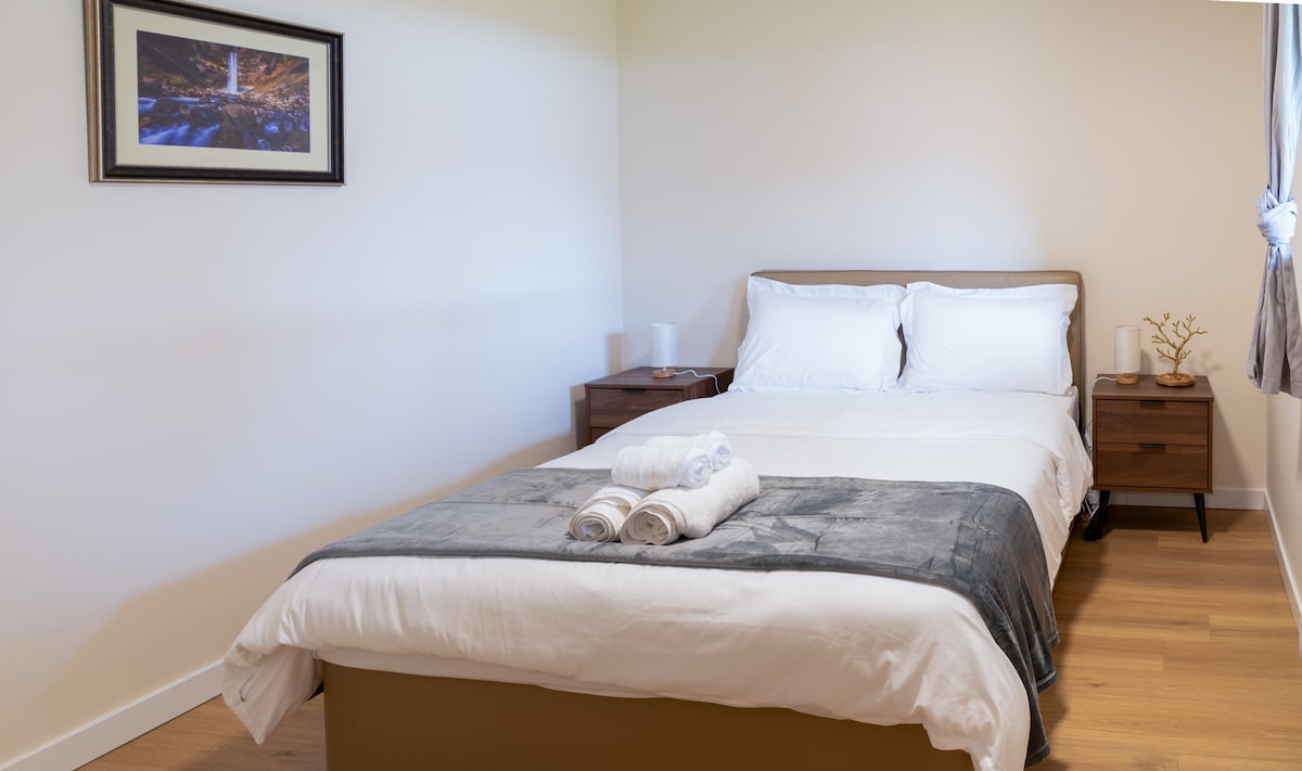 Bienvenido a tu estilo escandinavo de 950 pies cuadrados, un dormitorio, un baño, además de un retiro de oficina, perfecto para parejas o viajeros solitarios. Disfruta de una entrada privada sin llave, oficina, wifi y una cocina totalmente equipada con café, té y espresso. Relájate en tu propio patio privado con un patio cubierto, chimenea, mesa de comedor, barbacoa Weber y asientos. Ideal para trabajar o relajarse: todo lo necesario para una estancia cómoda. Bebés/niños pequeños bienvenidos: silla alta, asiento de coche, parque infantil portátil, cama.