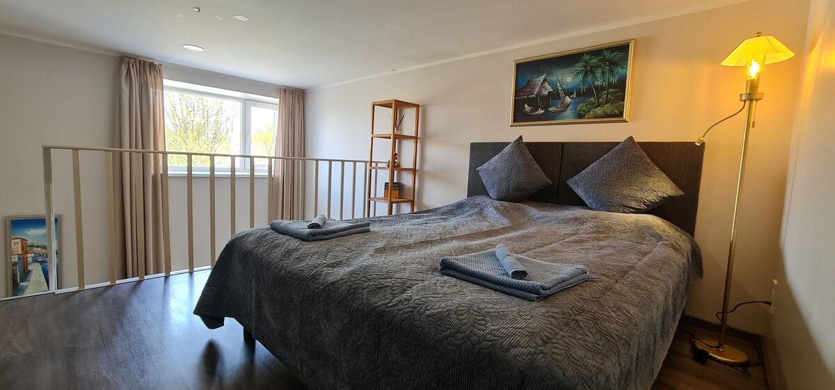 Disfruta de este alojamiento tranquilo y céntrico. Hermosas vistas de Riga desde varios balcones y el casco antiguo está a solo 10 minutos en coche. ¿Buscas una escapada romántica? Tal vez planeando viajar con niños o un emocionante viaje en solitario, este apartamento ofrece una experiencia única. Ya sea que quieras relajarte en el balcón privado, disfrutar de las comodidades modernas o explorar la ciudad cercana, este apartamento junto al río tiene algo especial para cada viajero.