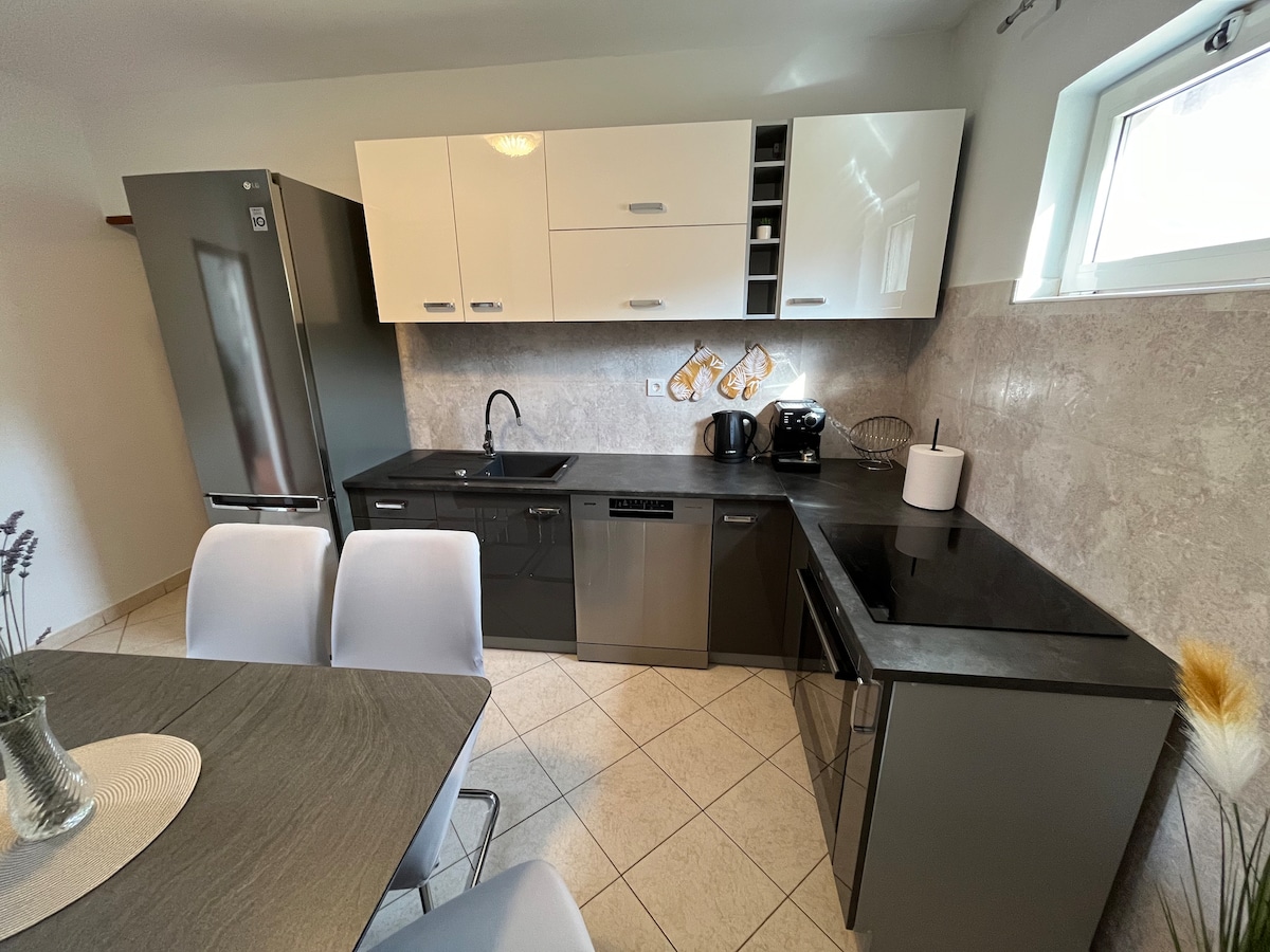 Este espacioso ático tiene una moderna sala de estar abierta con la cocina conectada a la terraza con espléndidas vistas al mar a la bahía de Kvarner. Tiene 2 dormitorios y un gran baño con bañera de hidromasaje. Plazas de estacionamiento gratuitas