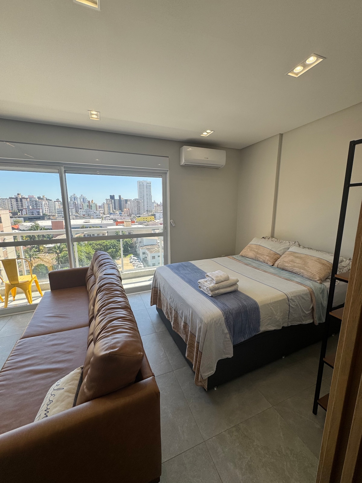 Estudio ejecutivo en el centro de Criciúma, con artículos de tocador Dove para una ducha relajante, aparcamiento privado, espacio de coworking, gimnasio y llegada autónoma las 24 horas. Comodidad, conveniencia y estilo en un solo lugar. Se admiten mascotas pequeñas.
