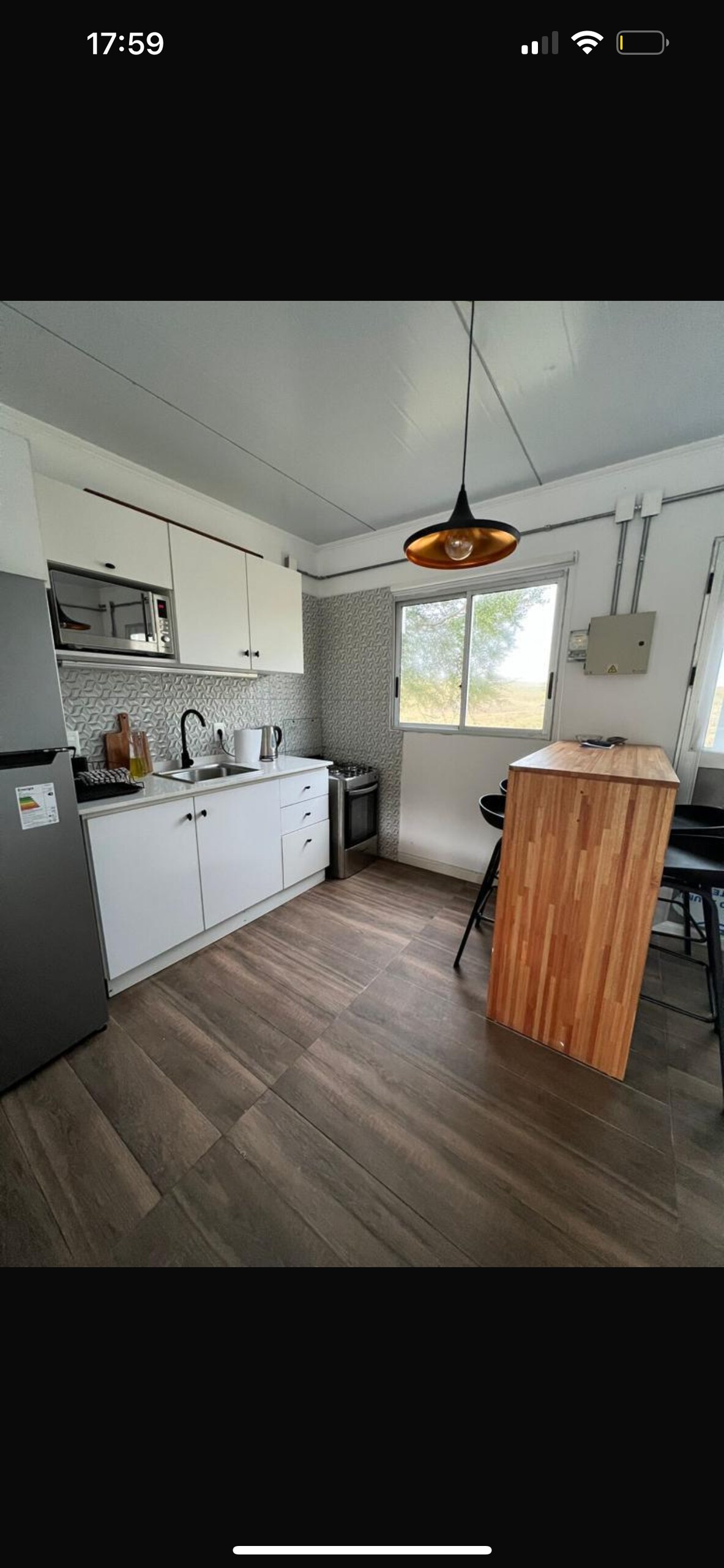 Es un estudio ecológico km 250 ruta 10 Mono ambiente con cama doble de excelente calidad está la posibilidad de agregar otra cama. Tiene electricidad, heladera cocinillas y horno. Afuera tiene una terraza de madera con un juego de mesa y 5 sillas Para tomar un mate o jugar unas cartas Hay un parrillero y pileta exterior a 3 metros de la puerta El baño es privado para el studio Hay wifi La playa está a 600 metros El acceso de auto es bueno Se puede comprar leña