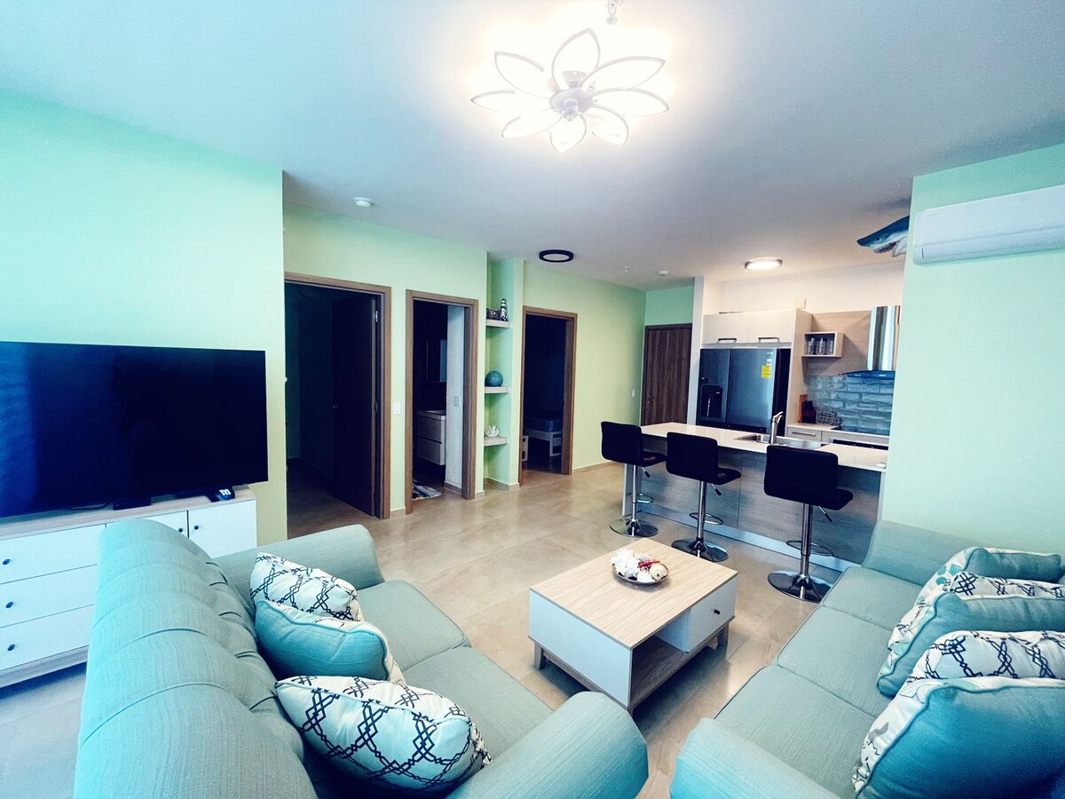 Nuestro apartamento full equipado y Renovado es más cómodo que los hoteles cercanos. Cocina equipada con implementos basicos para cocinar y nevera. Wifi, Smart TV y cable TV. Podrás disfrutar de una excelente vista, en un lugar cómodo y tranquilo, así como: • Piscina acceso solo a la zona de toboganes de agua. La laguna artificial de agua salada es solo para uso de propietarios y/o huespedes con estadias de 30 dias o mas. • Playa privada Canchas deportivas.