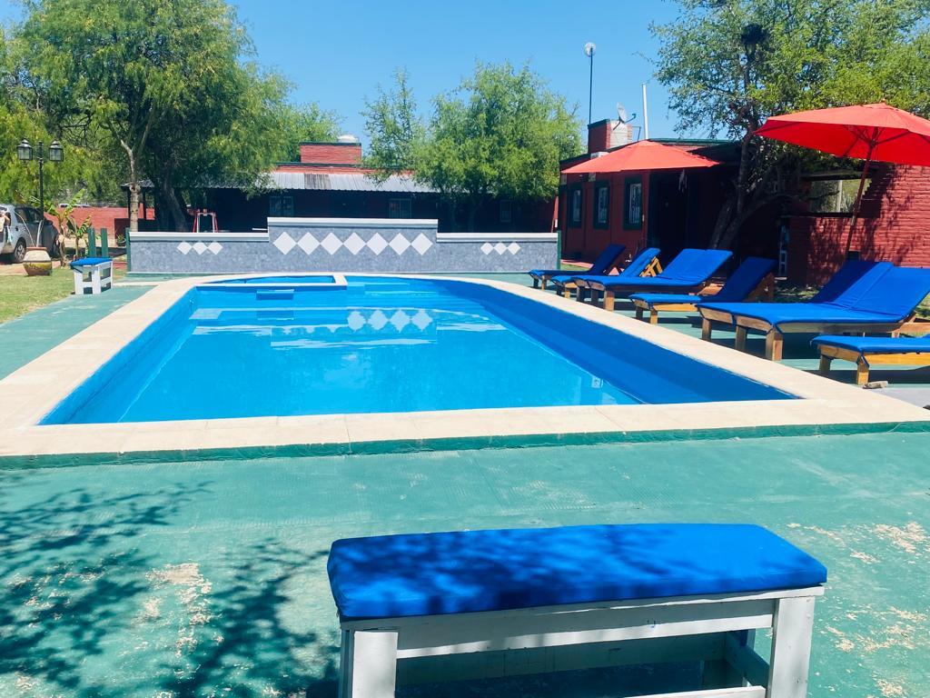 Cabañas para 4 personas. Una cama matrimonial (sommier) o dos individuales, en el dormitorio y dos camas individuales en living-comedor (sofá cama). Aire acondicionado, calefacción, cocina equipada, microondas, bañera termal, TV, piscina, amplio patio con asadores, quincho, estacionamiento interno. A metros del Autódromo, muy cerca del nuevo Campo de Golf, a 3 km del Aeropuerto y a 5 km del centro. Para llegar con GPS: 27°30´48,08" S; 64°54´24,14" O.