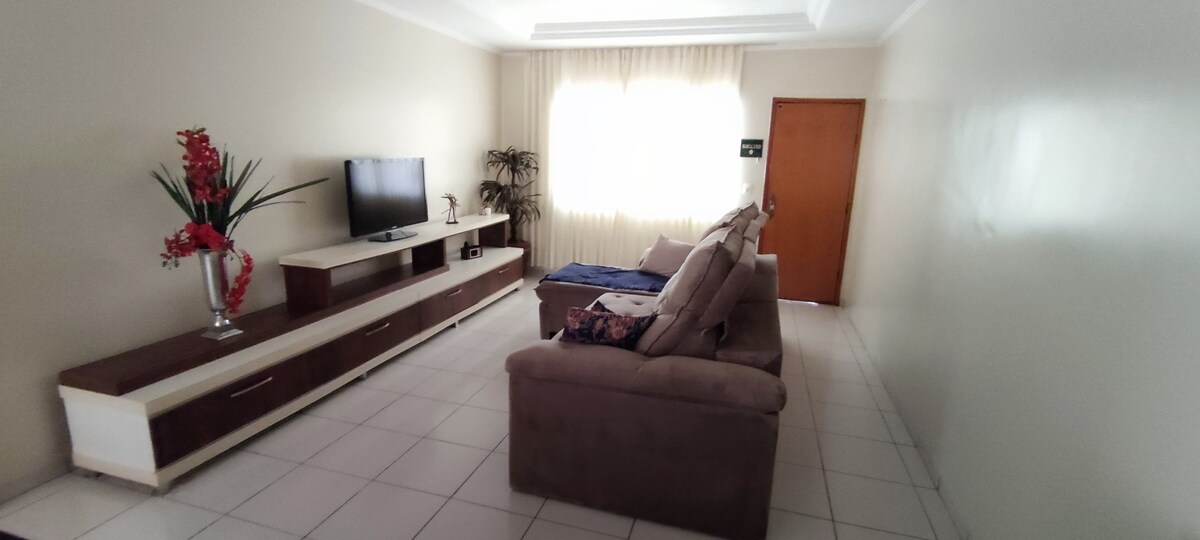 Casa ubicada a 5 minutos del ganado y a 200 metros del anillo de carretera - SALIDA A GOIÂNIA , TECNOSHOW Y MONTIVIDIU. Habitación 1 cama doble, televisión y aire acondicionado. Habitación 2 cama doble, litera y aire acondicionado. Habitación con sofá cama para 02 personas y aire acondicionado y TV de 75pulgadas ¡Garaje para 02 autos con enchufe 20a para autos eléctricos!