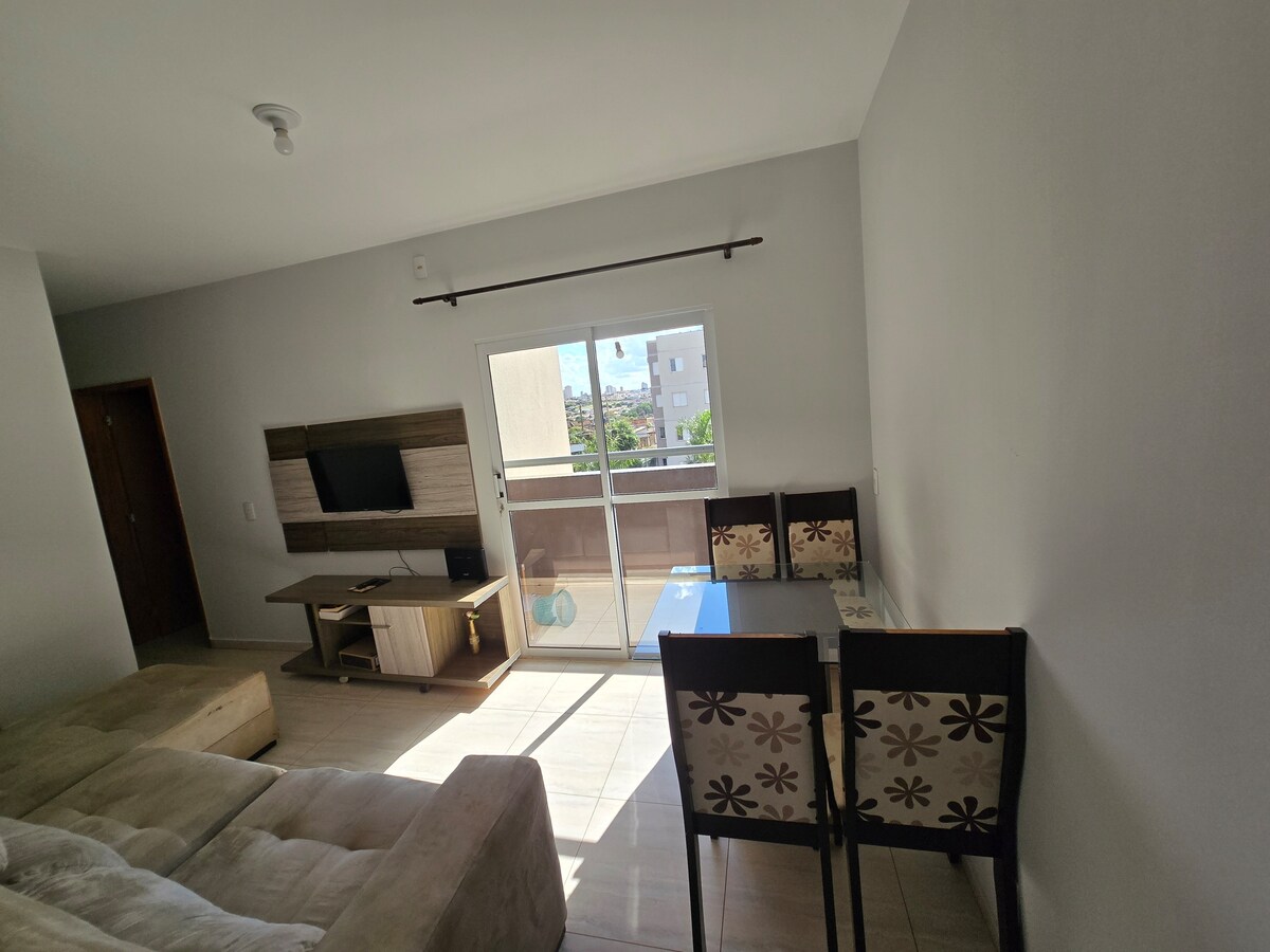 Apartamento en un condominio residencial, con 3 dormitorios, dos camas dobles, 1 cama individual y un sofá cama, puede alojar hasta 6 personas, todas equipadas para satisfacer las necesidades de los huéspedes, con dos espacios de garaje, área al aire libre con jardín y parque infantil. Siempre estamos disponibles para cualquier pregunta, siempre buscando la satisfacción del cliente.