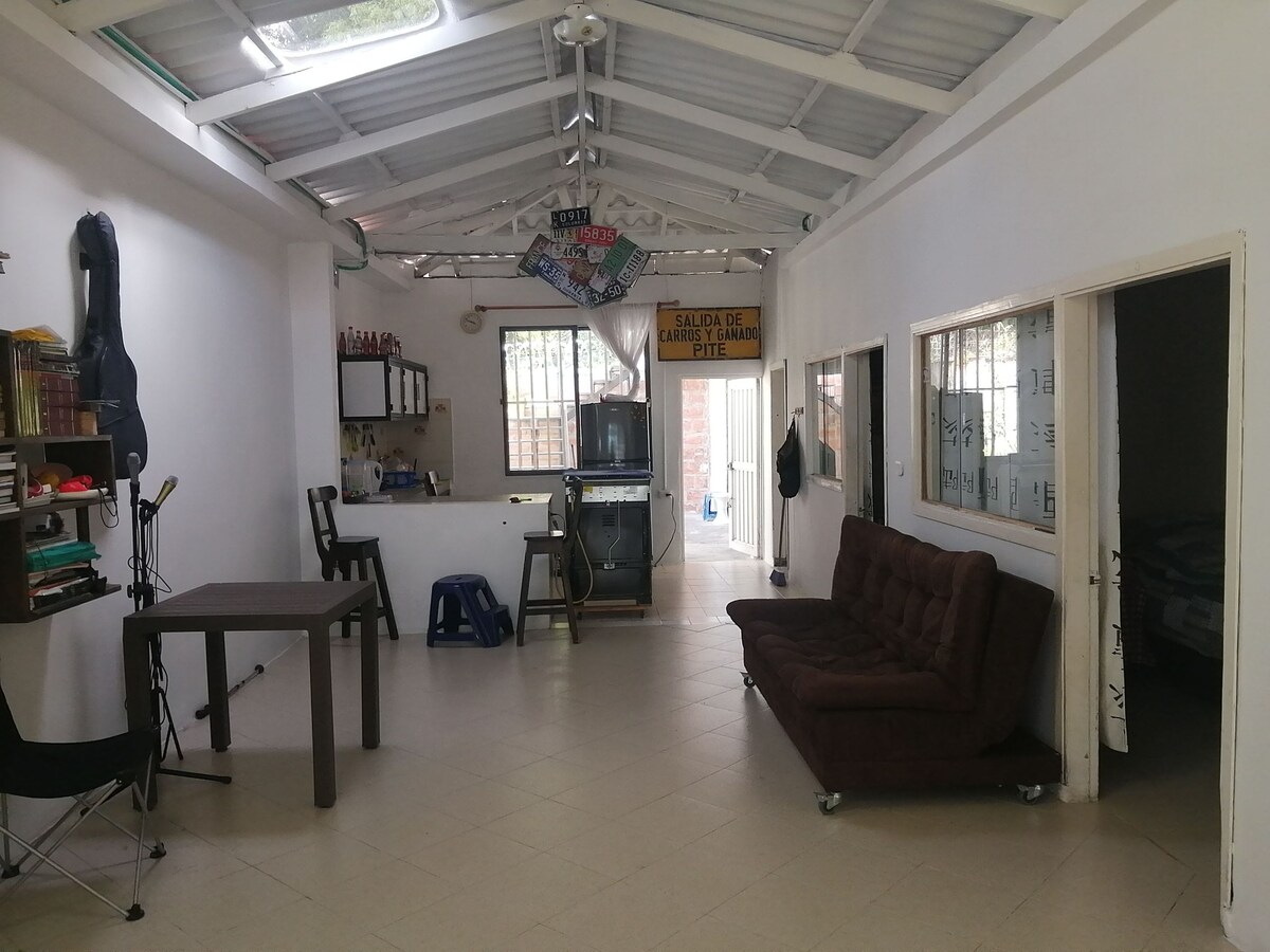 Casa campestre entera. La estadia es en una casa, dentro de la propiedad donde tambien vive la anfitriona Patricia, quien puede darle consejos sobre las experiencias en Jardin. Hermoso y tranquilo lugar. Ideal para relajarse, para pasear, para entrar en contacto con la naturaleza, para avistamiento de aves. La propiedad cuenta con rios, arroyos, bosques, cultivos, guaduales. A diez minutos en auto del centro del pueblo de Jardin, 30-40 minutos de agradable caminata. Pocas casas alrededor.