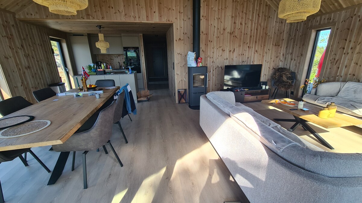 Heredé Godli de una tía vieja hace unos 25 años. La casa está construida alrededor de 1950 por un carpintero local que también ha hecho muchos de los muebles. Intentamos mantenerlo un poco retro en la casa. Al mismo tiempo, estamos constantemente haciendo nuevas mejoras. El sistema de electricidad en el segundo piso acaba de ser reemplazado. Usamos la casa nosotros mismos como casa de vacaciones. La casa es abierta y tranquila. Hay lugares agradables para nadar cerca, bonito terreno de senderismo y un poco de media hora en coche a Risør y Kragerø.