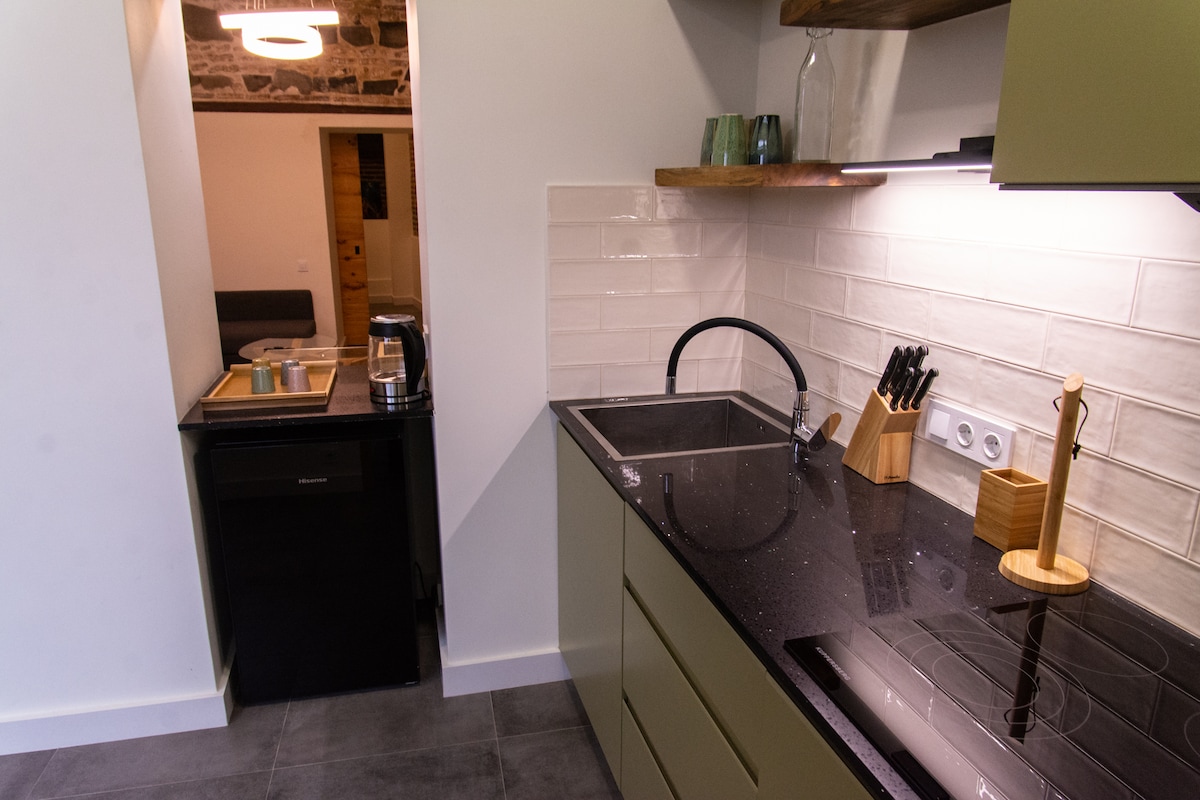 Atractivo apartamento boudoir recién reformado situado en el vibrante distrito del casco antiguo de Tiflis. ¿Buscas una experiencia única en la zona de moda de la ciudad? El lugar está enfrente del famoso restaurante georgiano Shavi Lomi; a poca distancia a pie de Fabrika (nuevo centro cultural) y de la calle peatonal recién reformada. Es igualmente atractivo para parejas románticas, viajeros solteros y grupos. El apartamento incluye un dormitorio luminoso y espacioso con un gran balcón, una acogedora sala de estar con chimenea, cocina y baño.