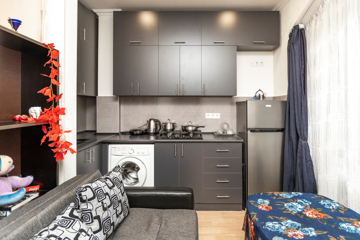 The place is in the right middle of Tbilisi center. It is close to public transport and nightlife. You'll love my place because of outdoor space. My place is good for couples and solo adventures. The apartment is newly renovated, well designed and very comfortable (17 sq.m) is the best choice with the price. The apartment is located on the first floor of the historic building, close to the Opera hause.