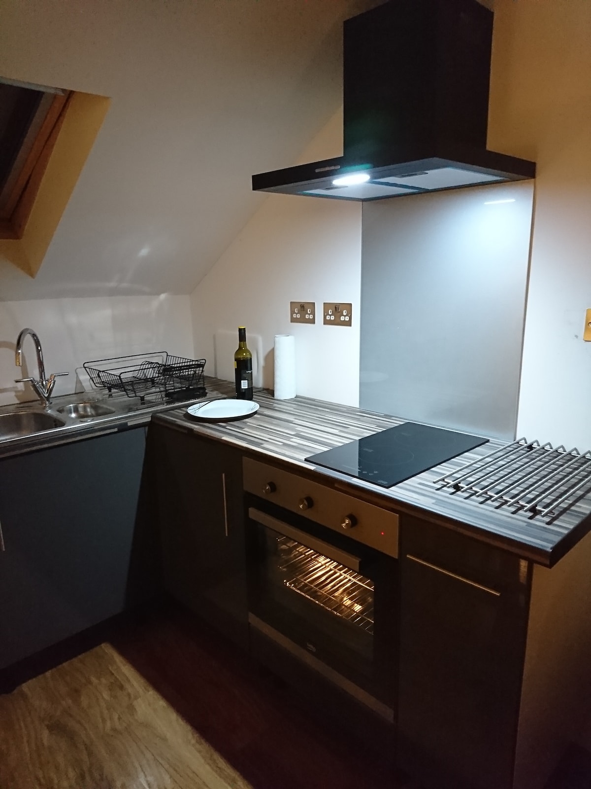 Este es un moderno loft convertido en la hermosa campiña galesa de Brecon Beacons. El loft es un espacio de estar de planta abierta y cocina independiente con un dormitorio doble con baño privado. Cuenta con acceso independiente a través de una escalera de madera y aparcamiento privado. Cuenta con wifi, TV inteligente y reproductor de DVD. Tiene calefacción central de gasoil y una cocina totalmente equipada. Ubicado en un precioso jardín con un gran estanque y un pequeño bosque. También hay una zona de patio privado en el exterior con mesa y sillas.