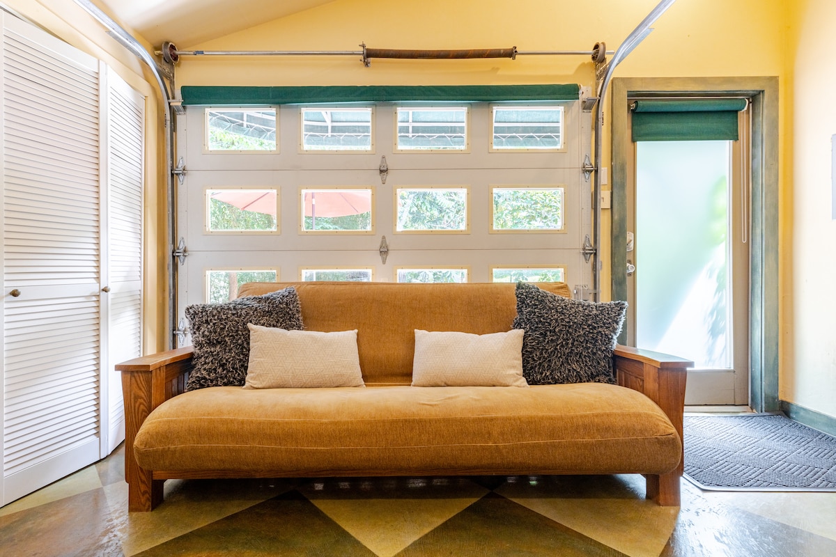 ¡De principio a fin, nuestro espacio es una delicia! En el interior, un tesoro de carpintería a medida y un diseño bien pensado crean un impresionante espacio «tradicional y moderno» que disfrutarás por su belleza y fluidez. Ofrece techos de tablones pintados a mano, paredes de cedro/piedra auténticamente antiguas, gabinetes personalizados, luces regulables, cocina completa, enchufes de fácil acceso y una entrada privada desde el patio lateral, un lugar encantador para sentarse y disfrutar de nuestro increíble patio comestible con bayas, higos, frutas, hierbas y verduras.