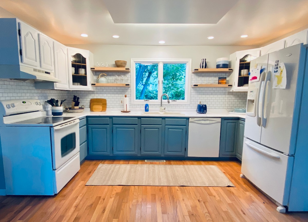 Acogedora casa de campo escondida en un barrio tranquilo a 1,5 manzanas del lago Míchigan, con un porche trasero protegido perfecto para tomar un café por la mañana. Cerca del distrito de arte de Benton Harbor, en el centro de St Joe, esta casa está rodeada de restaurantes locales, cervecerías, bodegas, campos de golf y tiendas. La playa es un destino durante todo el año, cada temporada tiene sus propias maravillas. Nota: no hay televisión y el wifi puede ser irregular debido a las colinas. Hay más de 90 escalones escalonados hasta la playa de arena de abajo. Aire acondicionado arriba, bañera original con patas de garra.
