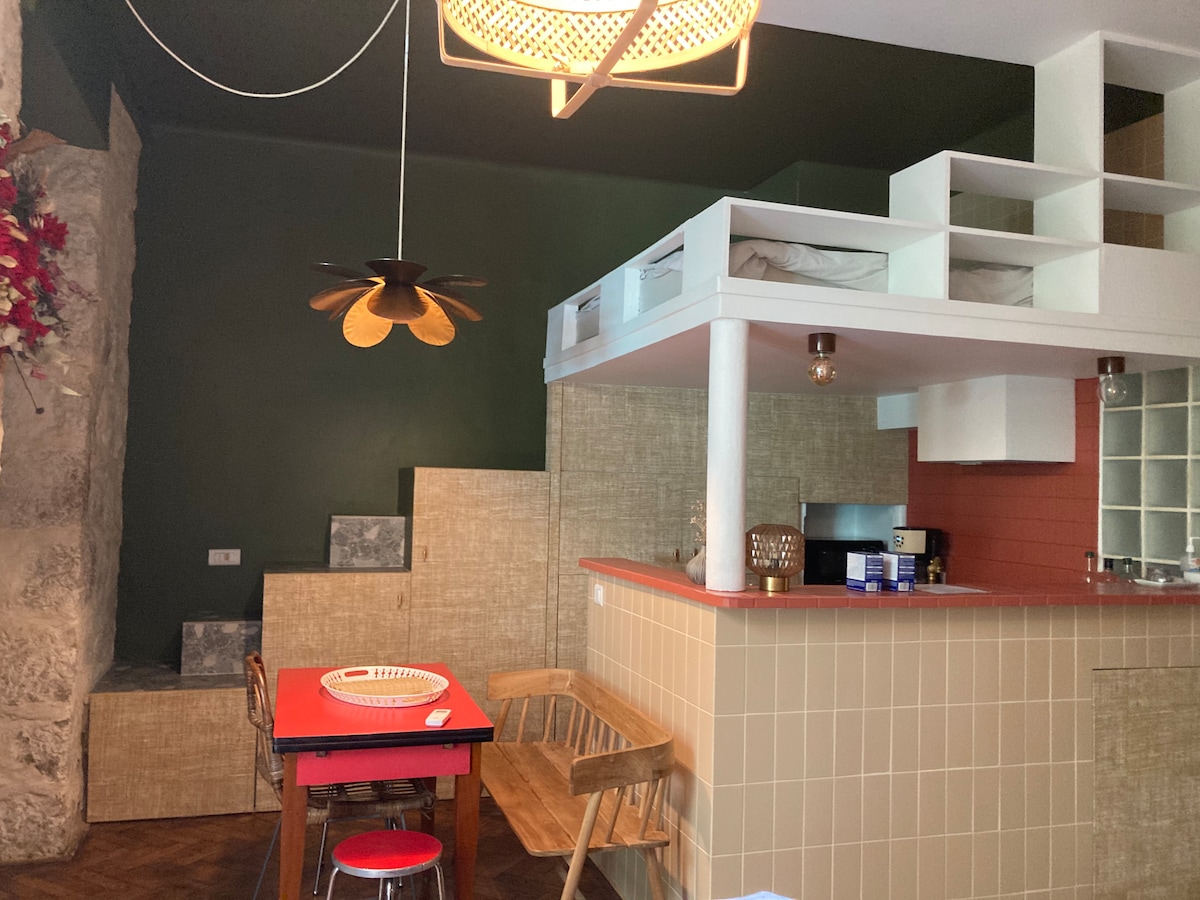 Es un pequeño loft en el centro de la ciudad . Suelos, techo alto, un lugar mágico diseñado para desconectarse, disfrutar de sus vacaciones y sentirse bien. El jardín puede tomar comidas o los últimos rayos de sol se admiten mascotas.