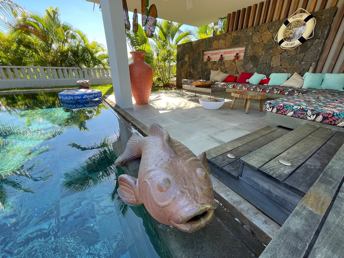 Impresionante lugar en la isla de Mauricio... Se escapará a esta villa moderna excepcional que se encuentra en una zona tranquila. Un alojamiento único, es espacioso y luminoso... A 2 pasos hay la playa, una tienda de comestibles y varios restaurantes. el pueblo es encantador con su mercado de frutas... Cerca de los magníficos jardines de Pamplemousses y las hermosas playas de la costa este de la isla . Desvent (criollo)