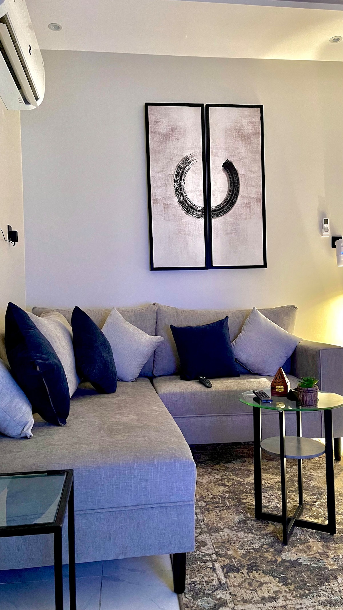 ¡Retiro de estilo bohemio en Al Narjis! Acogedor apartamento de 1 dormitorio con sala de estar, cocina equipada, 2 baños y una mesa de comedor para 4 personas. Las plantas naturales aportan frescura, la iluminación suave y los tonos cálidos crean un ambiente relajante. Perfecto para personas que viajan solas, parejas o estancias cortas. Wifi rápido, aire acondicionado y aparcamiento incluidos. Disfruta de comodidad, estilo y una estancia tranquila en Riad en un espacio nuevo y acogedor.