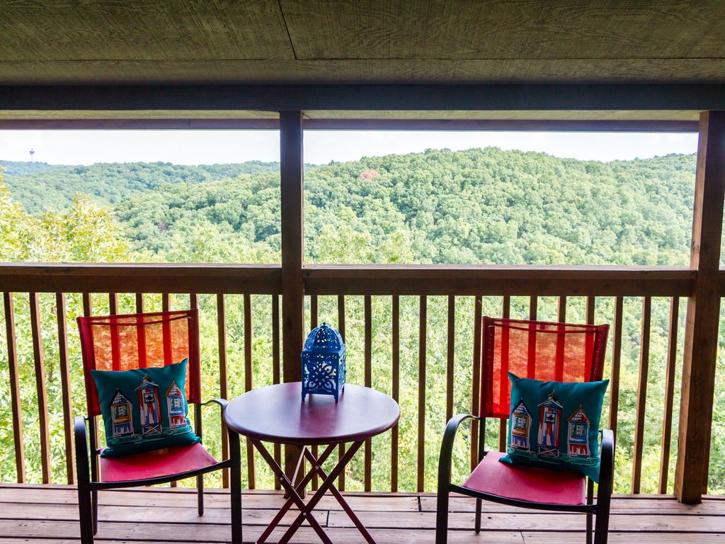 Come to enjoy this Lake Cabin that has 3 bedrooms, 2 baths, 2 spacious living rooms with smart TVs in each & Dish service. Wood burning fireplace on the 1st floor, library & board games on the 2nd. Relax & enjoy a hot or cold beverage on a rooftop patio with the panoramic view of Table Rock Lake & a beauty of the Ozarks. Don't forget to soak away your worries in the hot tub downstairs & to have fun at 2 car garage game room or go for a short private hike to the Lake.